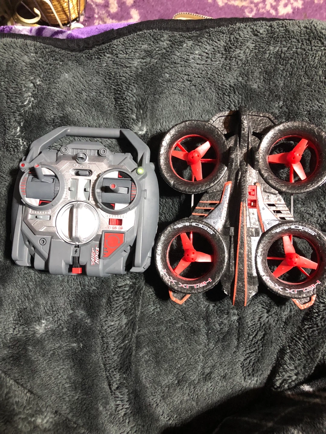 65Selling an Air Hogs Helix X4 Stunt RC. It comes with a remote controller and the stunt vehicle. The vehicle has red accents and black wheels. Condition:9.5/10