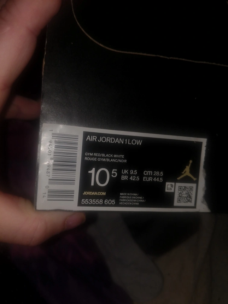 Men's Air Jordan 1 Low Red/Black-White Size - 10.5