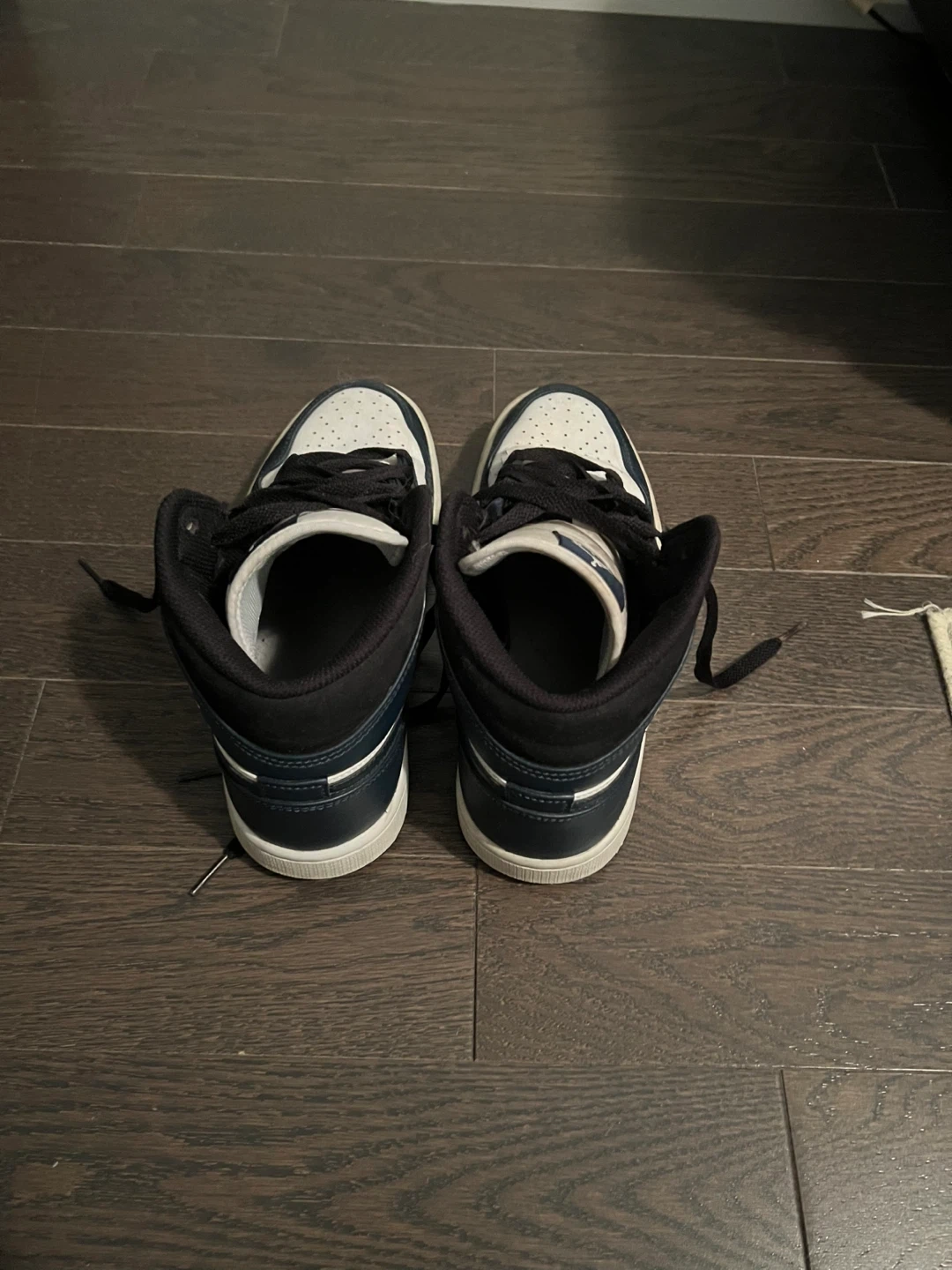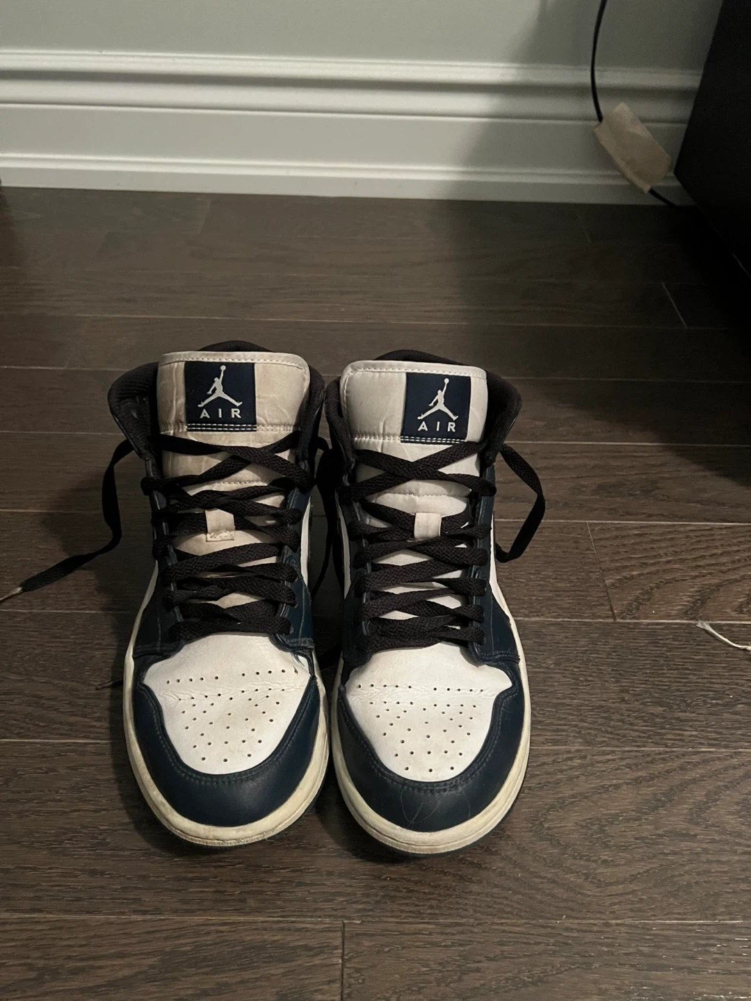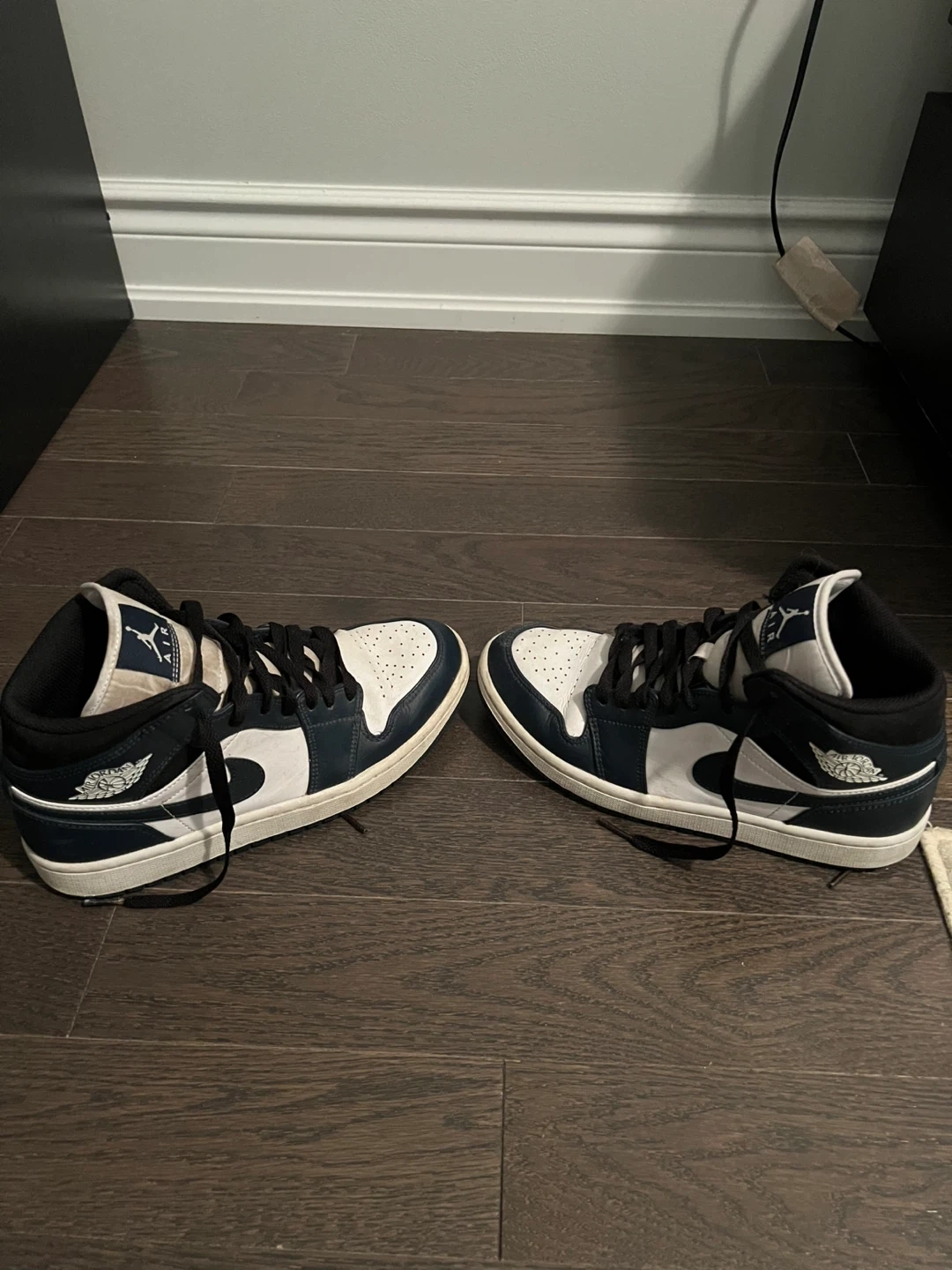10Selling a pair of Air Jordan 1 Mid Armory Navy. The size is 7.5 US. They are in good condition ready for a new home!