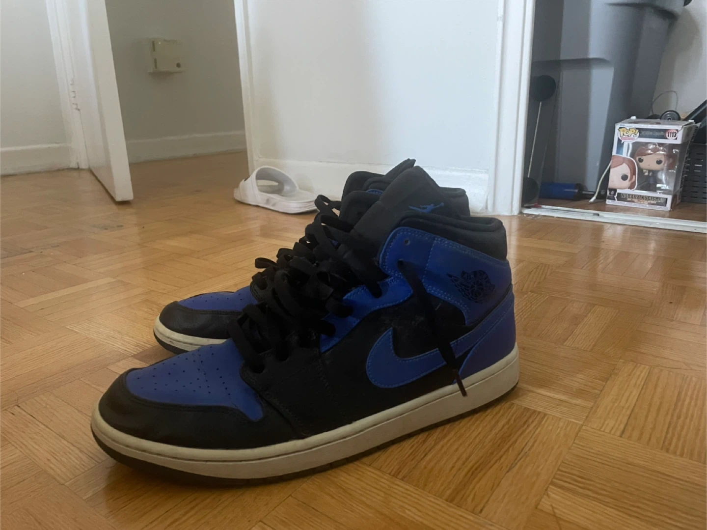 10Selling a pair of Air Jordan 1 Mid sneakers in Hyper Royal and Black. They're in great condition and ready for a new home! The size is US 12. Toe area tiniest bit creased. No box perfect condition.