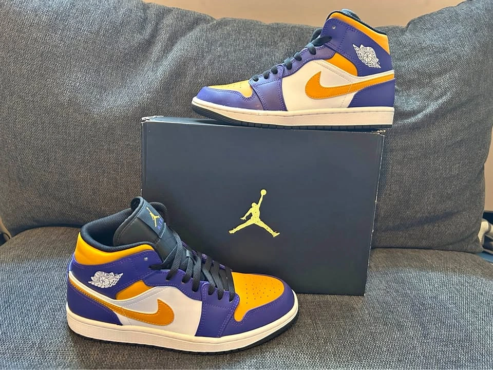 Air Jordan 1 - Mid Laker colors - Purple, Yellow, White and Black Mens 8.5 BNIB - never worn $225