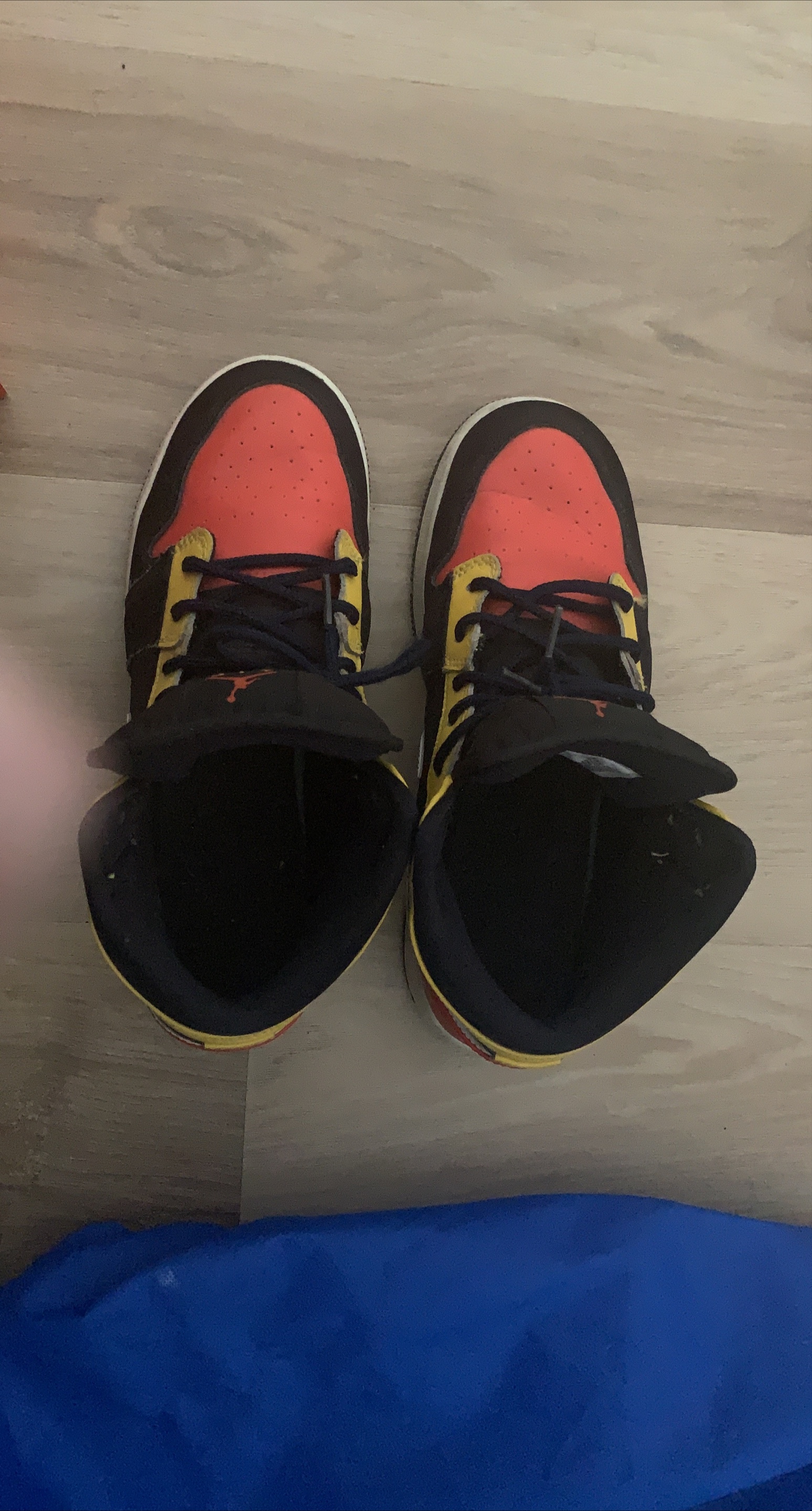 Selling a pair of Air Jordan 1 Mid SE Lakers sneakers. They feature a black, yellow, and red colourway. Please take a look at the pictures for condition!