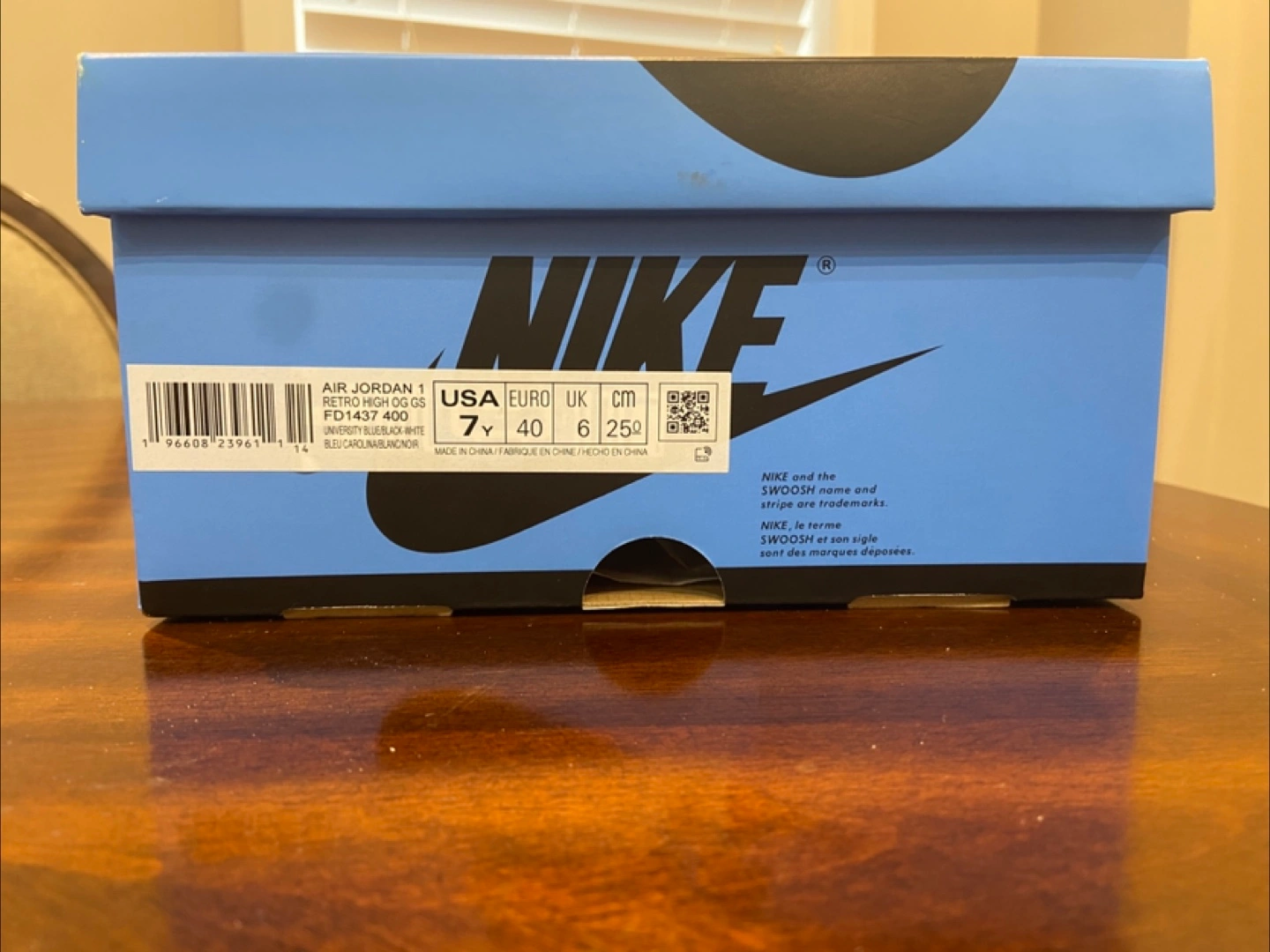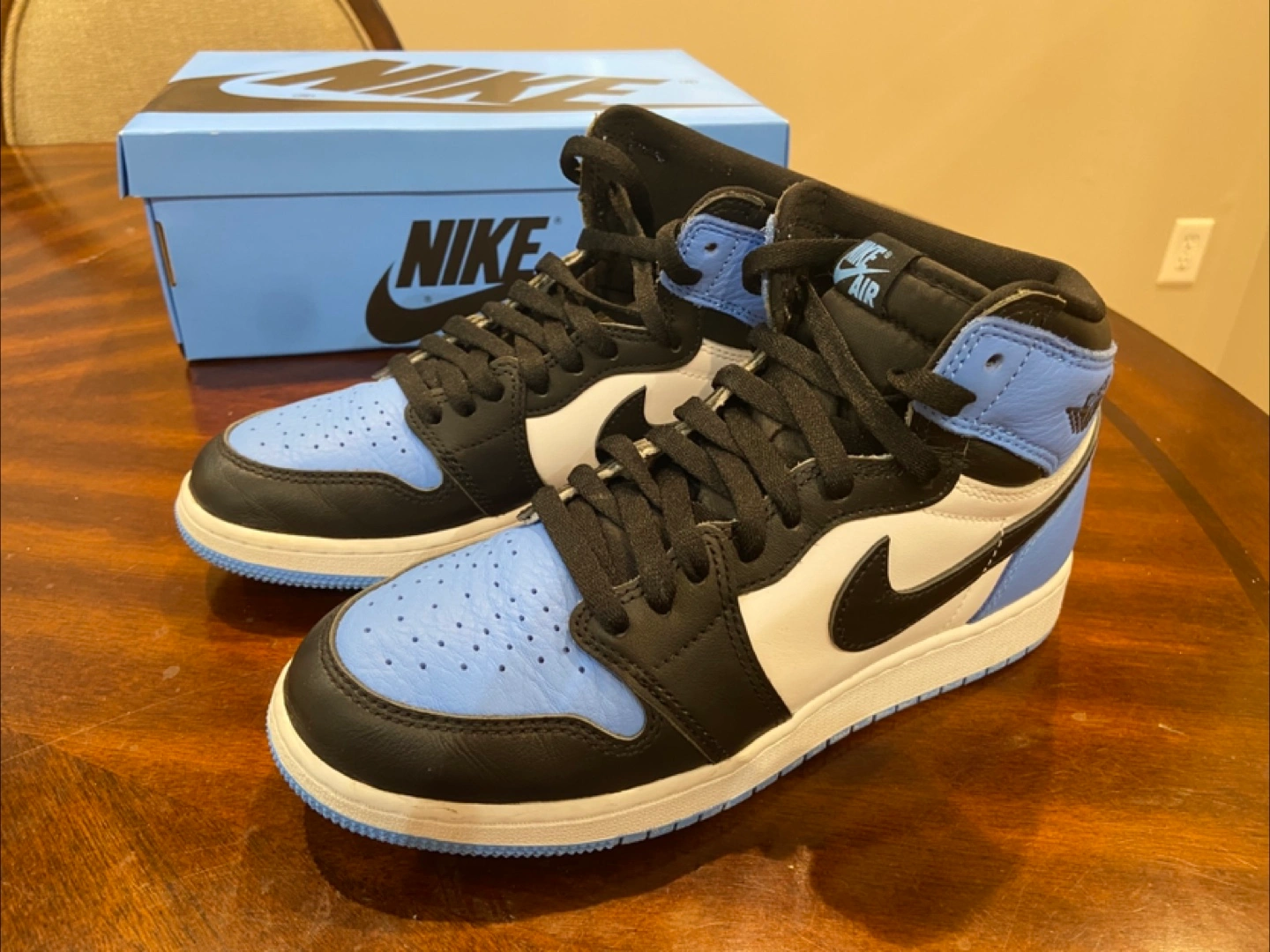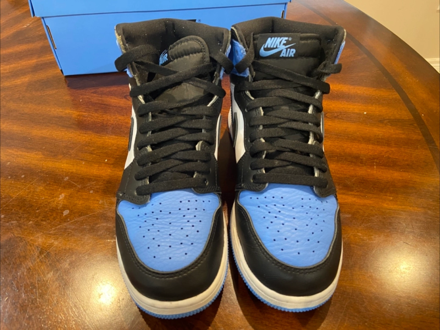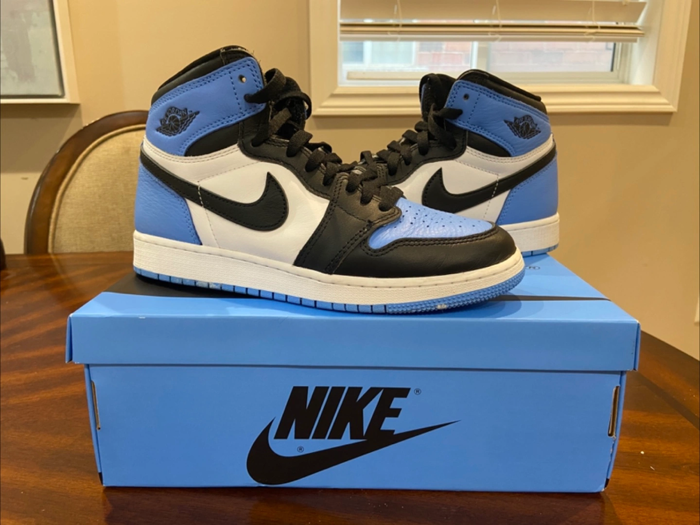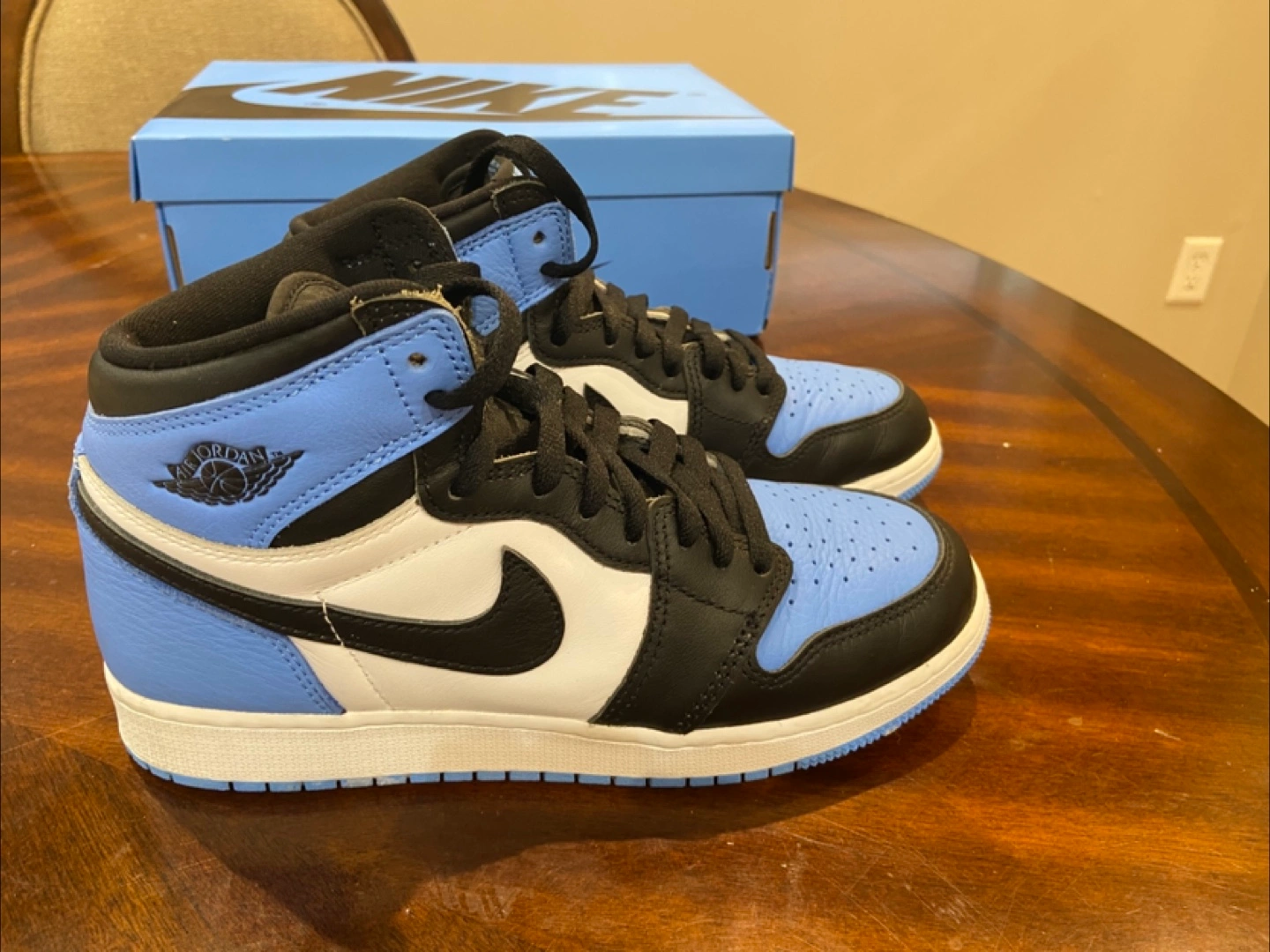 University blue/black-white Comes with box and valid rfid/qr code Size 7y USA Bought from KixN6 Vaughn Bought for $330 Selling for 280 (worn twice) NEGOTIATIONS AVALIABLE pick up in newmarket area, near upper canada mall