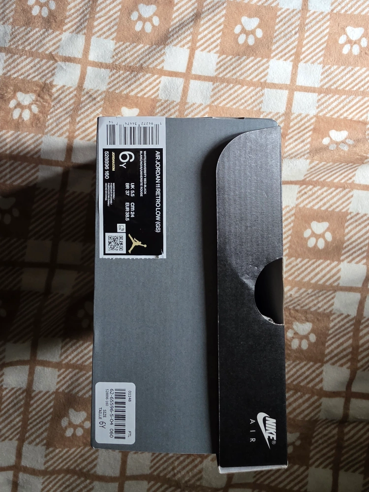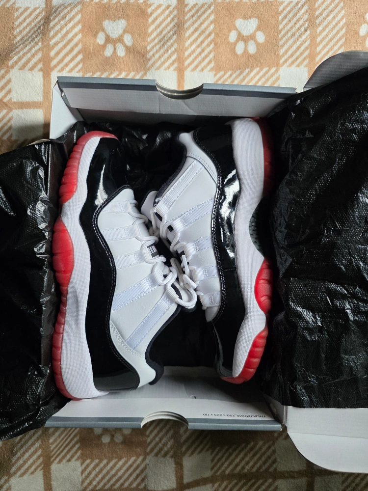 Selling a pair of Air Jordan 11 Retro Low GS shoes in size 6Y! They come in the original box. The colourway features a mix of white, black, and red accents. Perfect for any young sneakerhead!