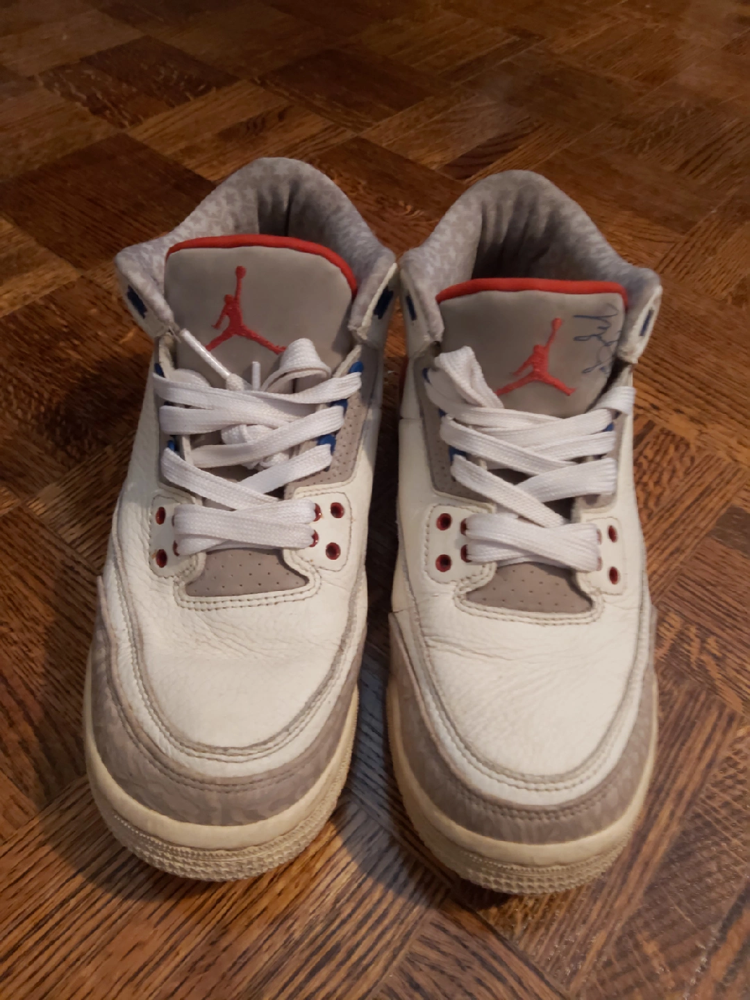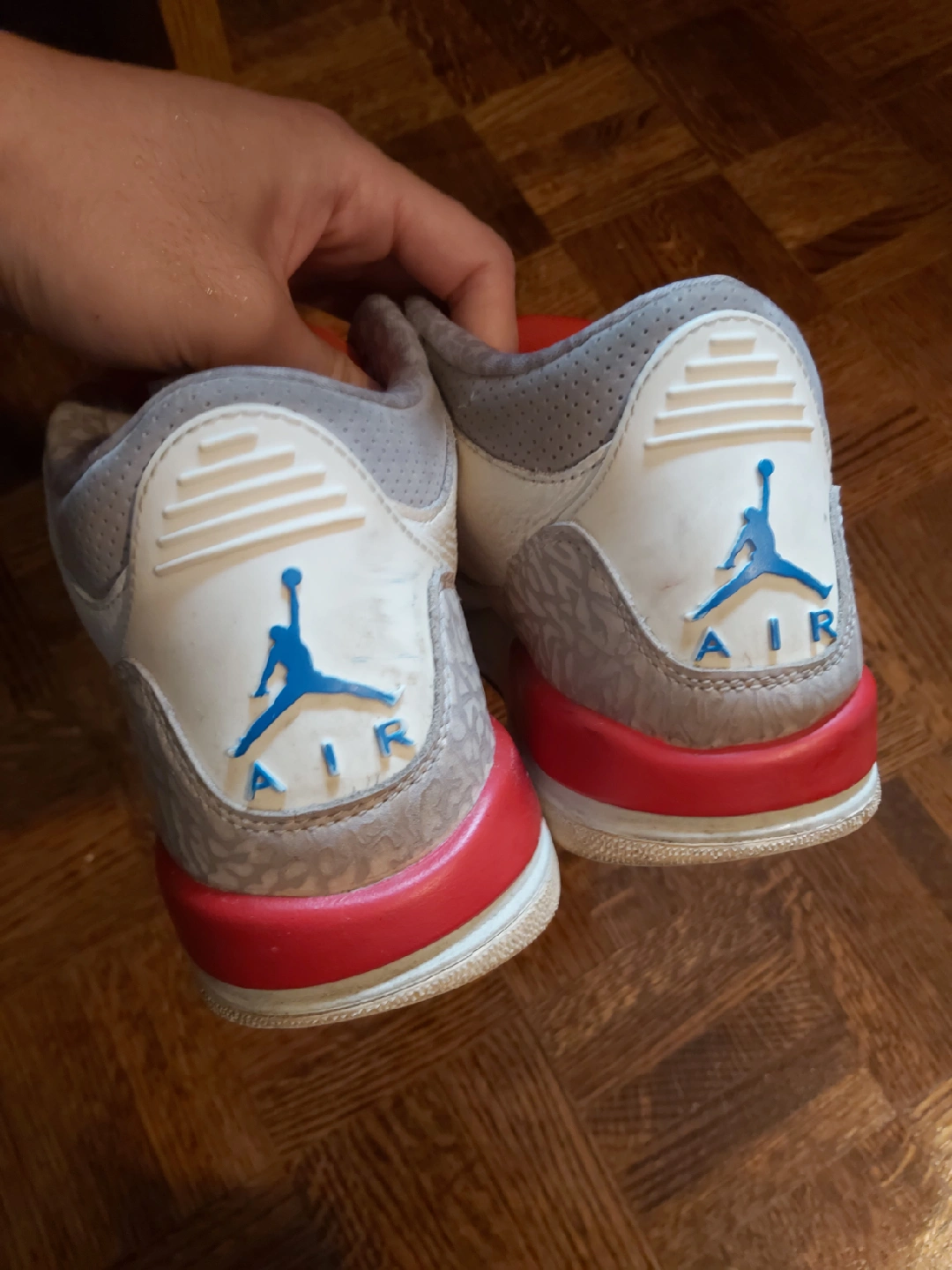44Selling a pair of Air Jordan 3 Retro international flight sneakers in size 6.5Y. They show some signs of wear, but still have lots of life left!