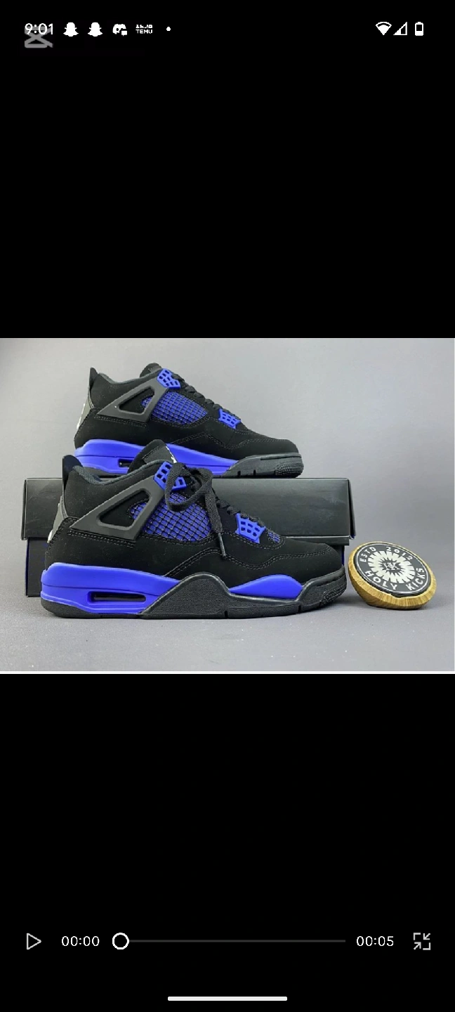 Selling a pair of Air Jordan 4 Retro sneakers in black and blue! They come with the original box