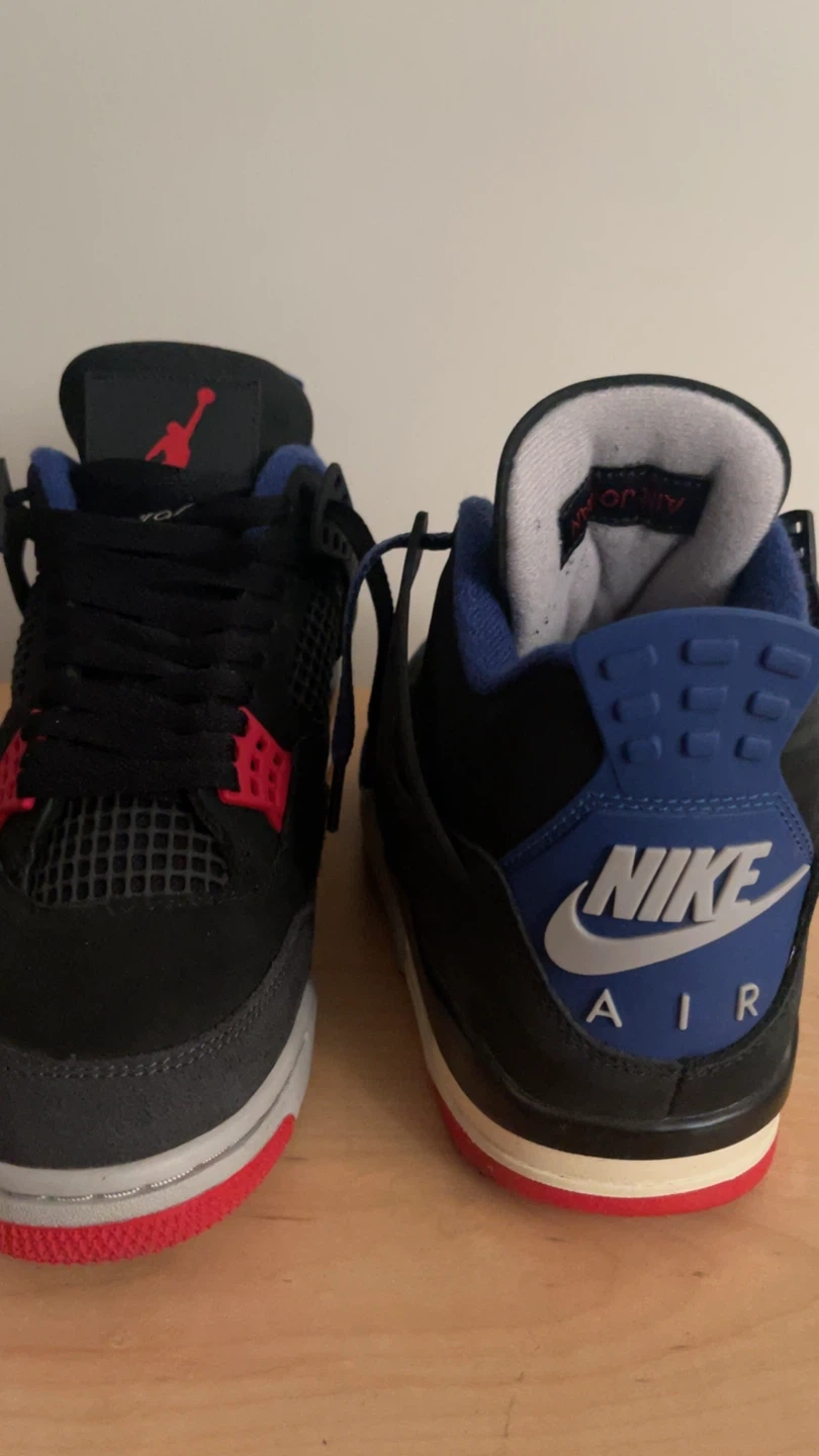 51Selling a pair of Air Jordan 4 Retro Rare Air. They are in great condition and come with extra laces and a Jordan logo patch That can come off and on. The size is US 8.5, Worn only a couple of times, No box.