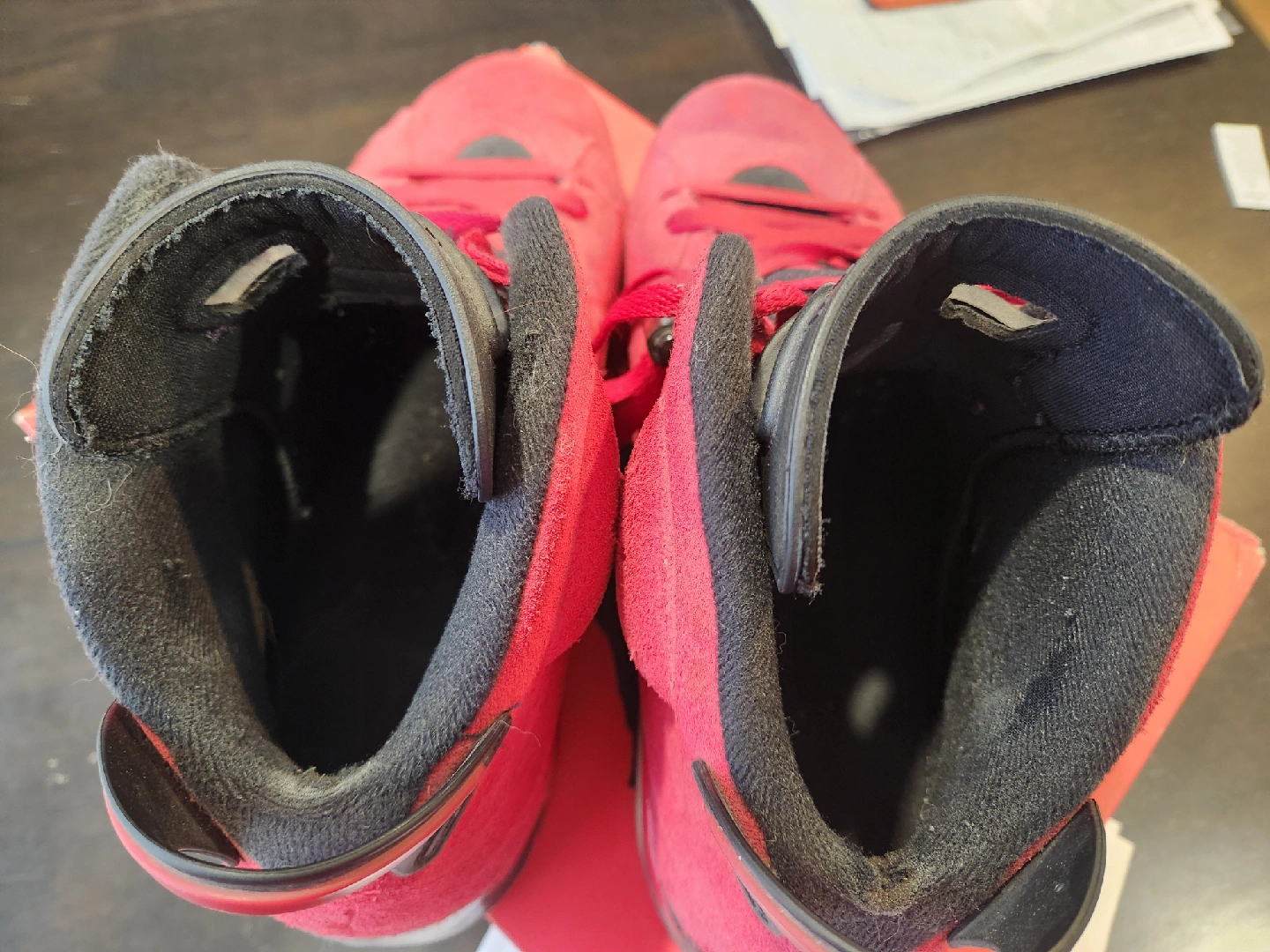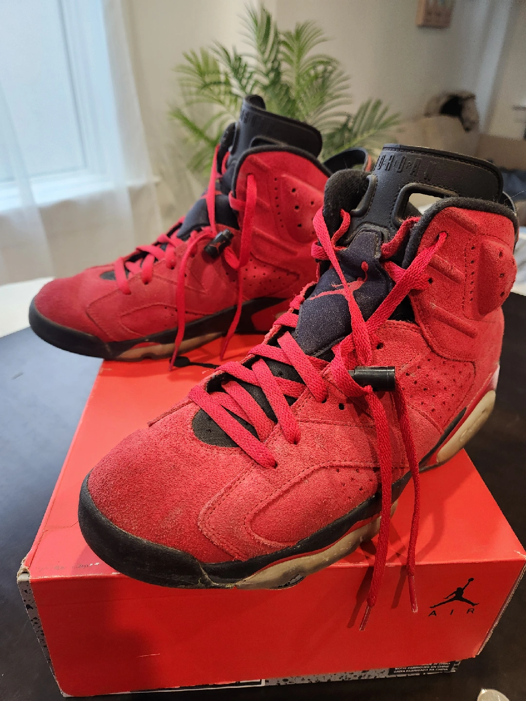 68Selling a pair of Air Jordan 6 Retro in the red suede colourway. They are in used condition, but still have lots of life left. Comes with the original box! size 10.5 some minor wear on heels