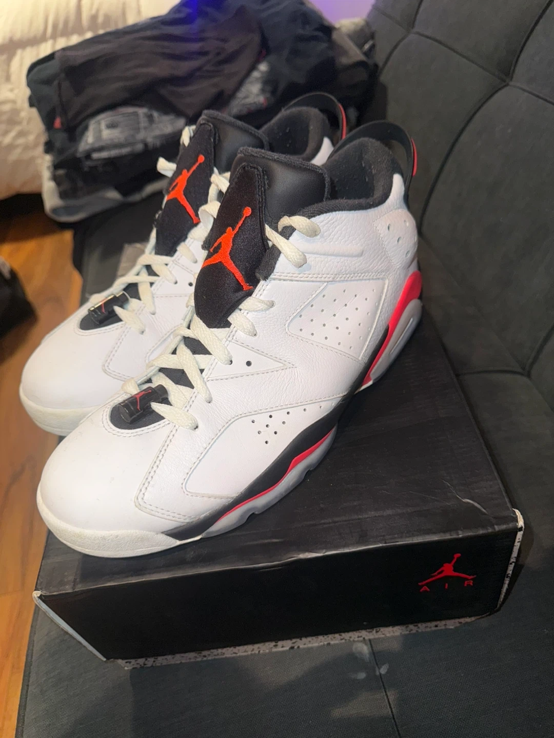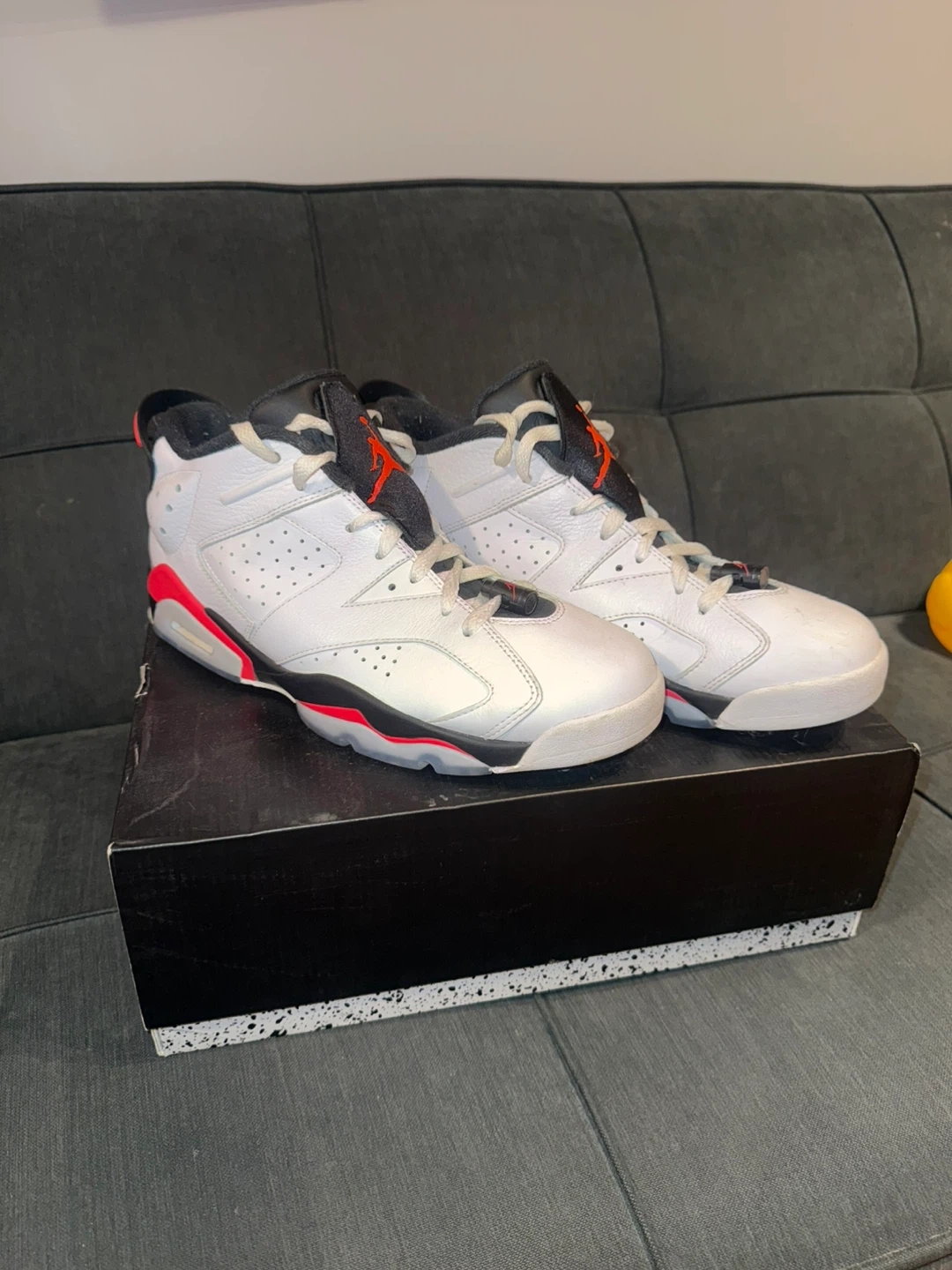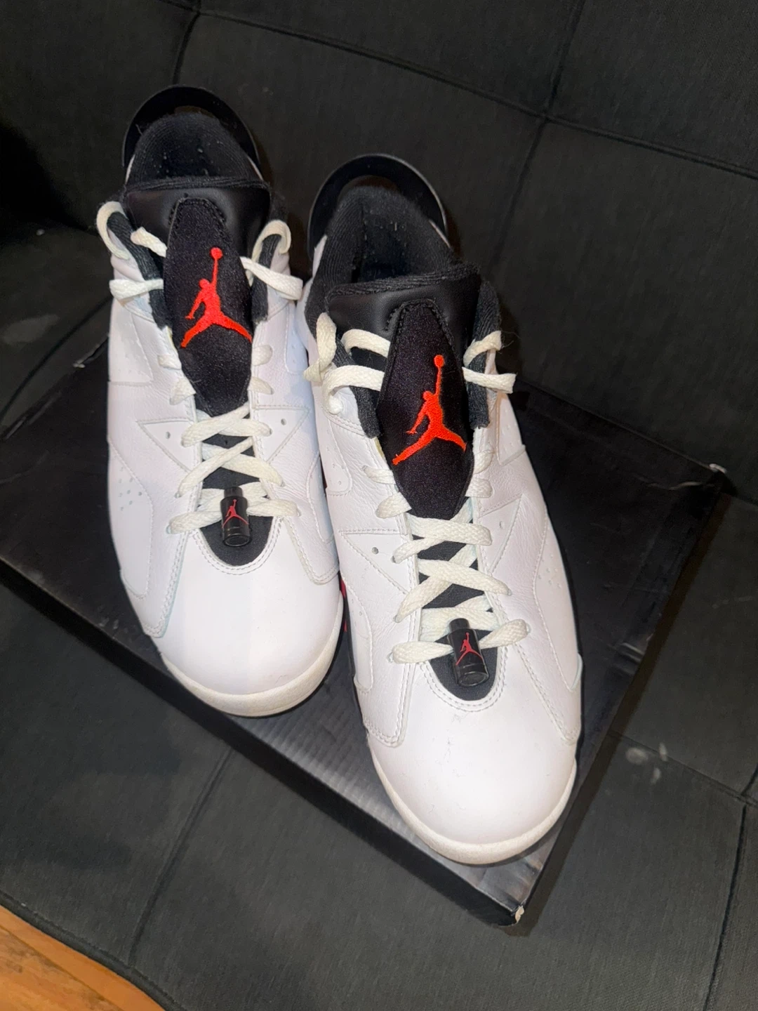 Selling a pair of Air Jordan 6 mid’s Retro sneakers in white and red! They are a US size 10 and come with the original box.