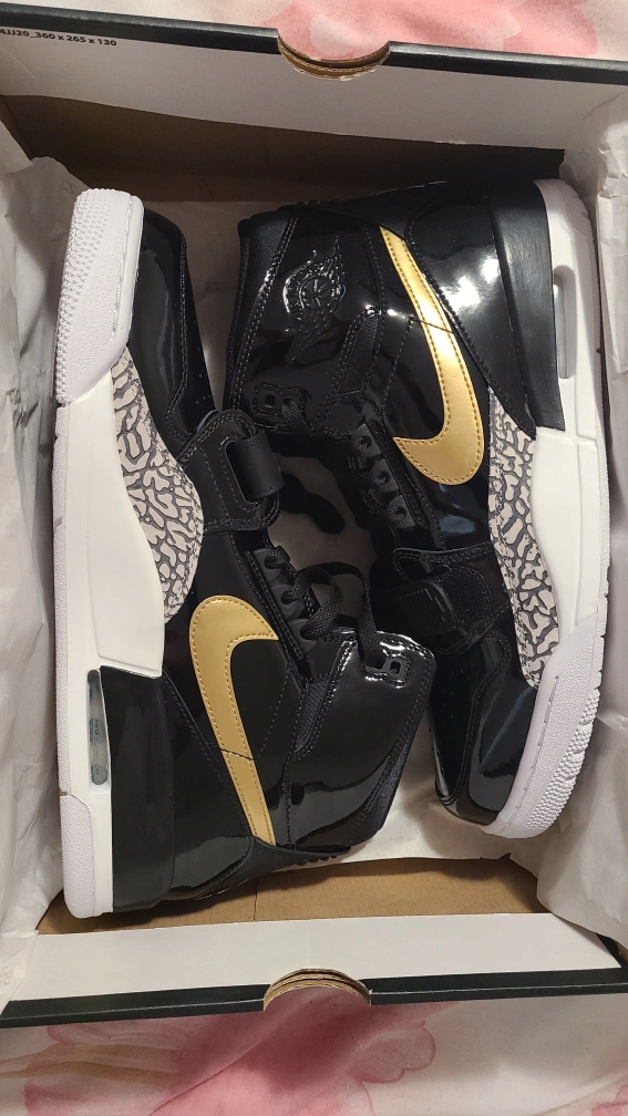 Selling a pair of Air Jordan Legacy 312 sneakers in black and gold! They're in great shape and come in the original box. The size is a men's 12 (US/CA). A stylish addition to any sneaker collection!
