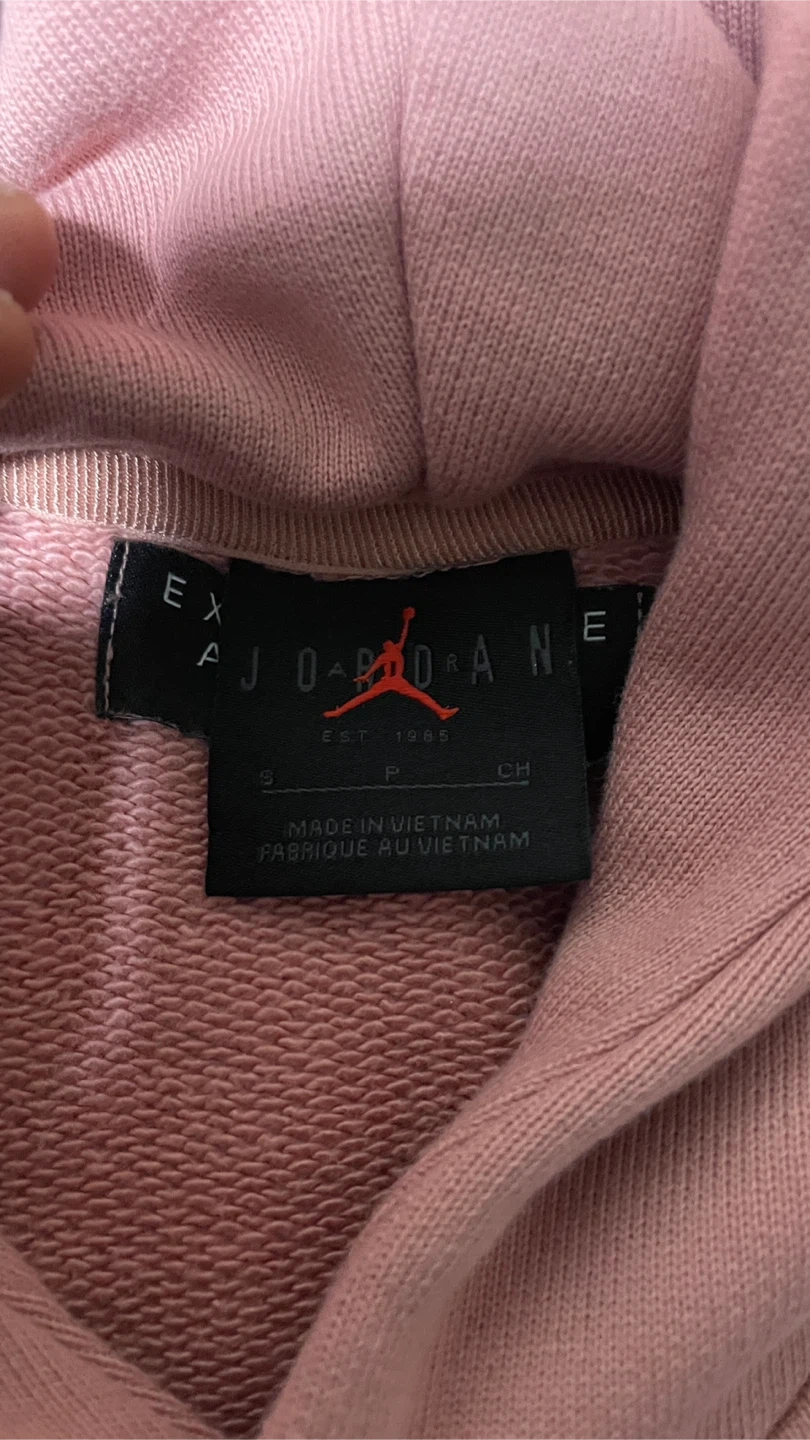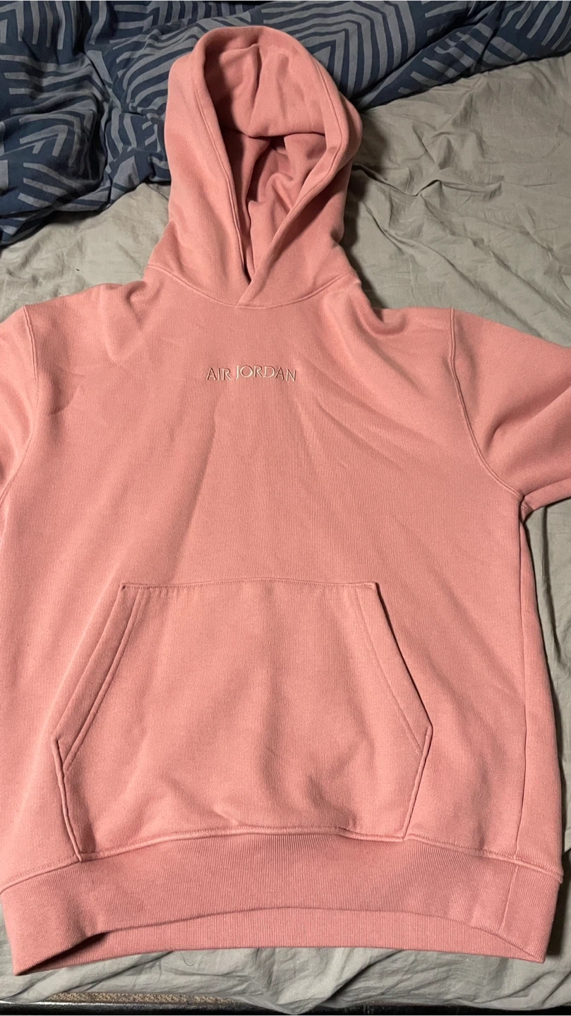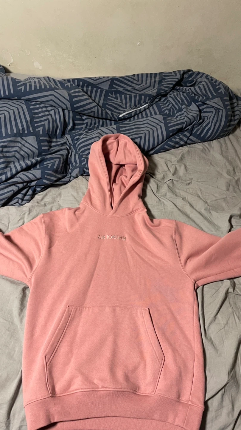 35Selling a Air Jordan hoodie in a lovely pink colour! It's a size small and has the classic Air Jordan logo embroidered on the front. Perfect for staying cozy and stylish!