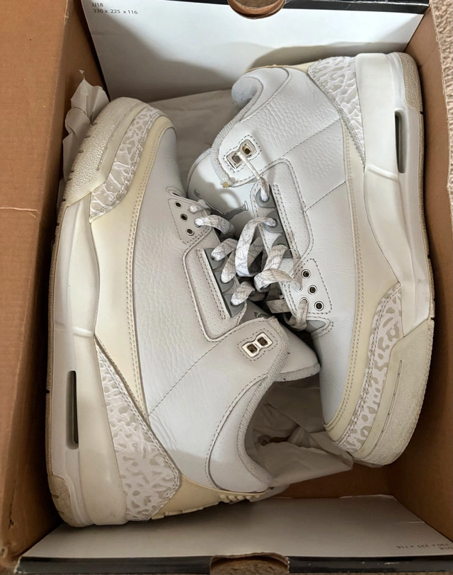 65Preowned 2007 Air Jordan Retro 3 Pure Money size 8.5 mens for sale. Comes with the original box. 8/10 condition, more pictures can be provided upon request. Overall great condition. Asking price: $250 Cash or ET accepted. Please don’t hesitate to ask questions! Also kindly check out my profile for other listings on other rare vintage items. All vintage premium items that we sell are genuine and authentic. Local meet ups in Scarborough town centre or Newmarket.