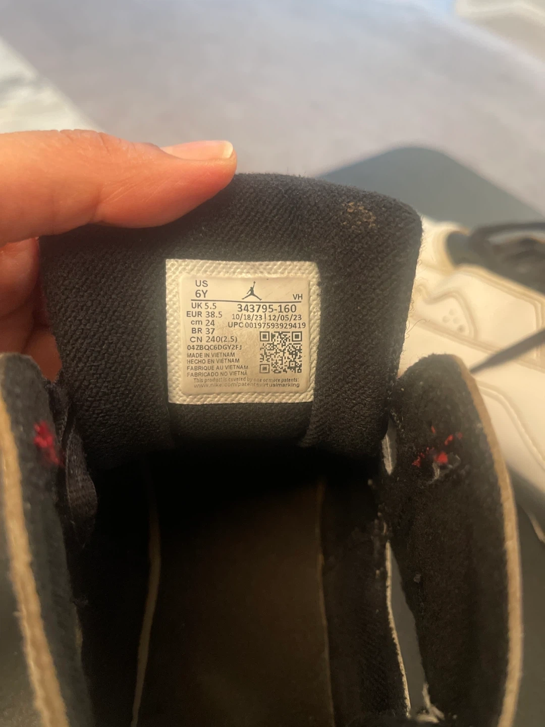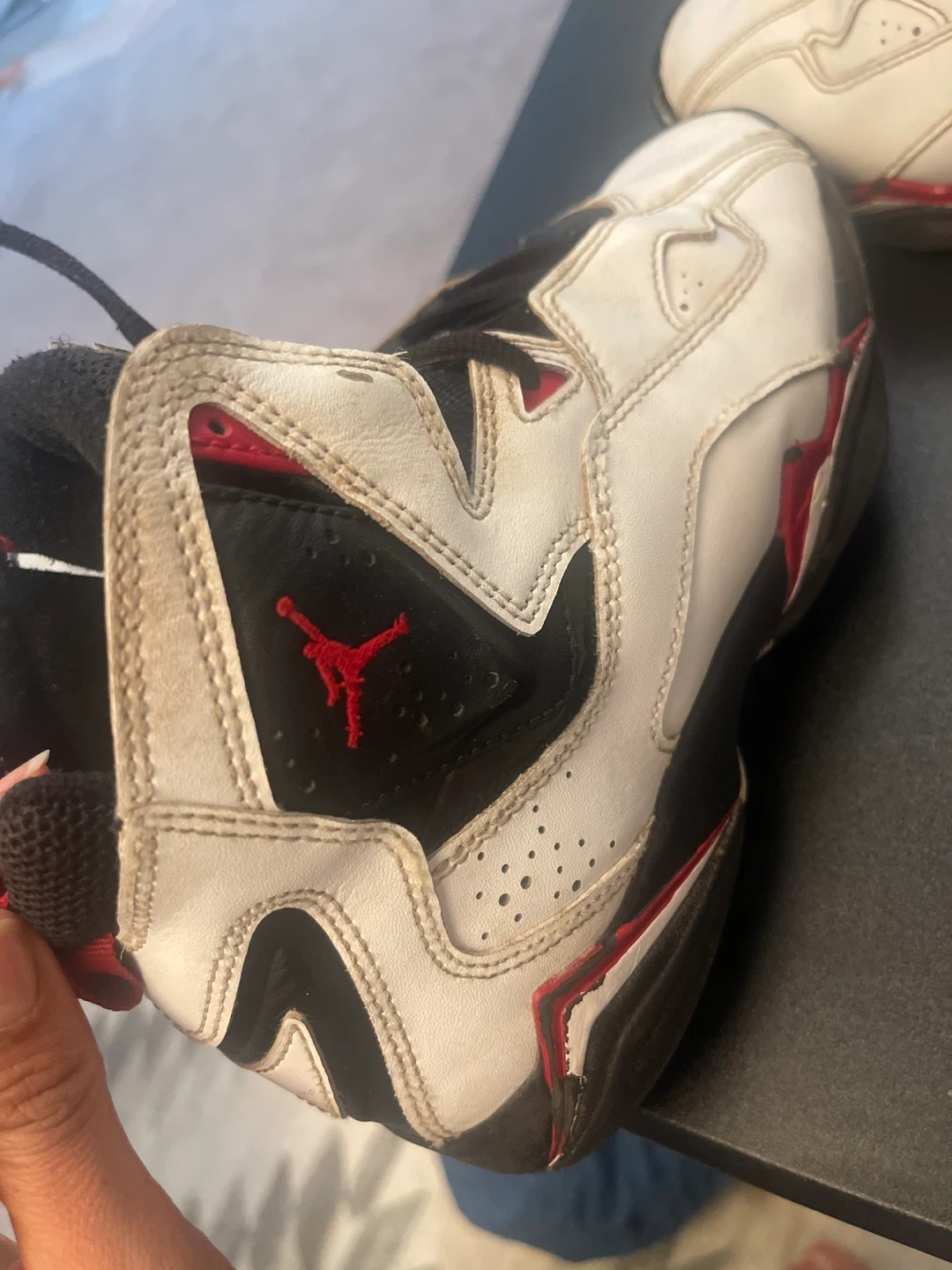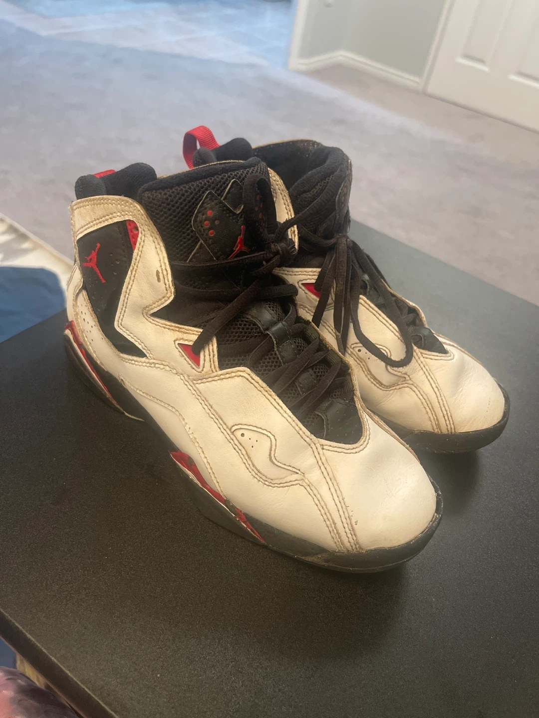43Selling a pair of Air Jordan True Flight shoes in size 6Y. They are white, black, and red. Please see photos for condition.
