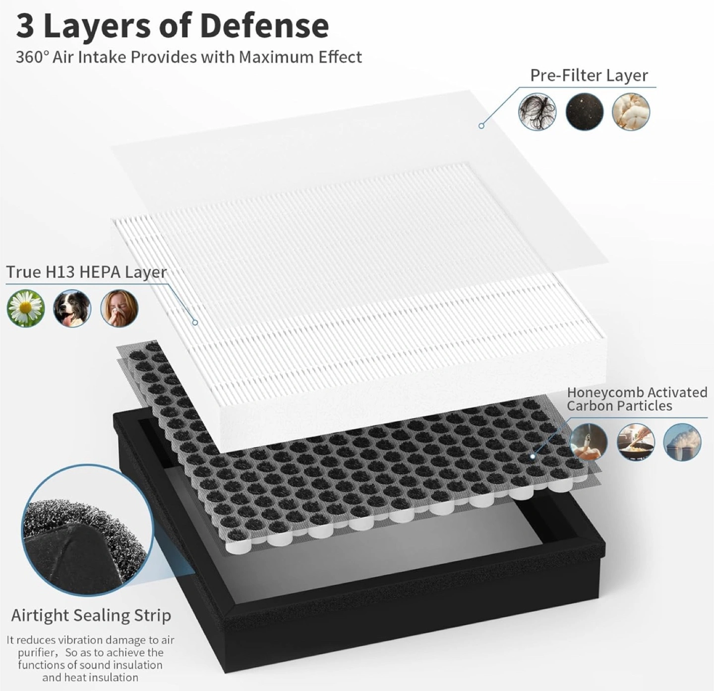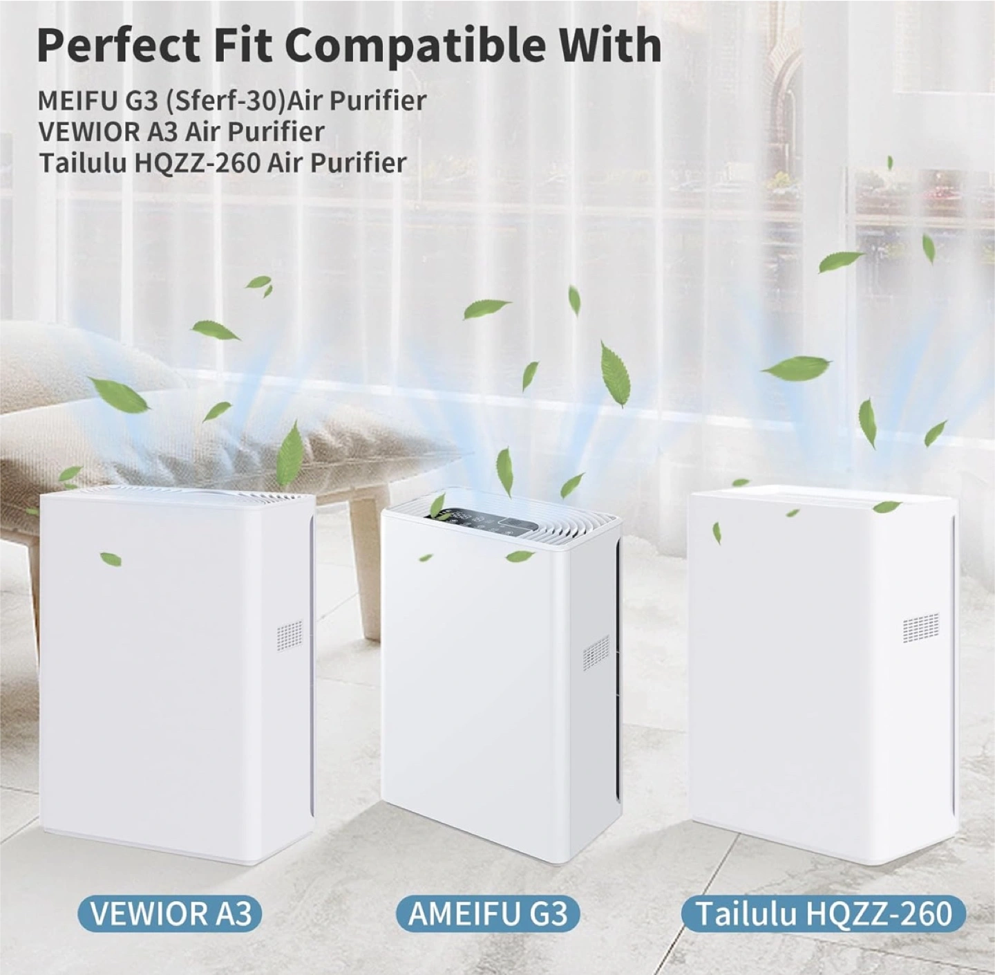 324G3/A3 Replacement Filter Compatible with AMEIFU G3 (Sferf-30), VEWIOR A3 & Tailulu HQZZ-260 Air Purifiers, 3-in-1 True HEPA Air Filter