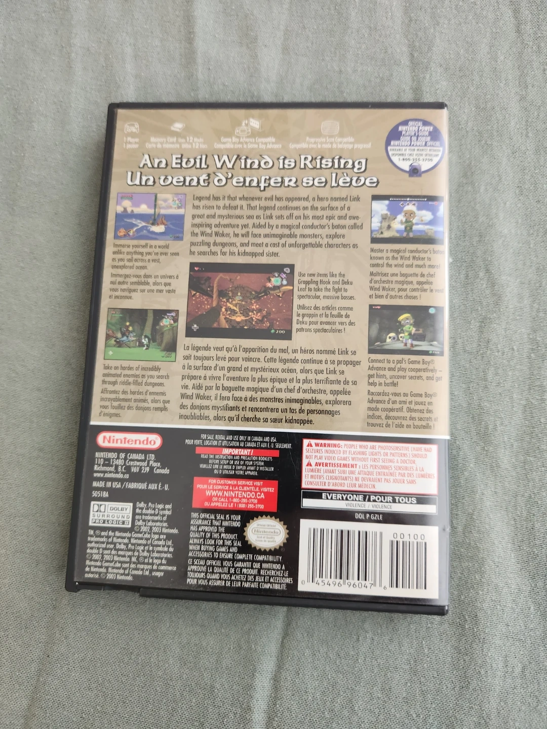 This is The Legend of Zelda: The Wind Waker for the Nintendo GameCube. It's an action-adventure game where players explore a vast ocean. The game includes the original case and disc.