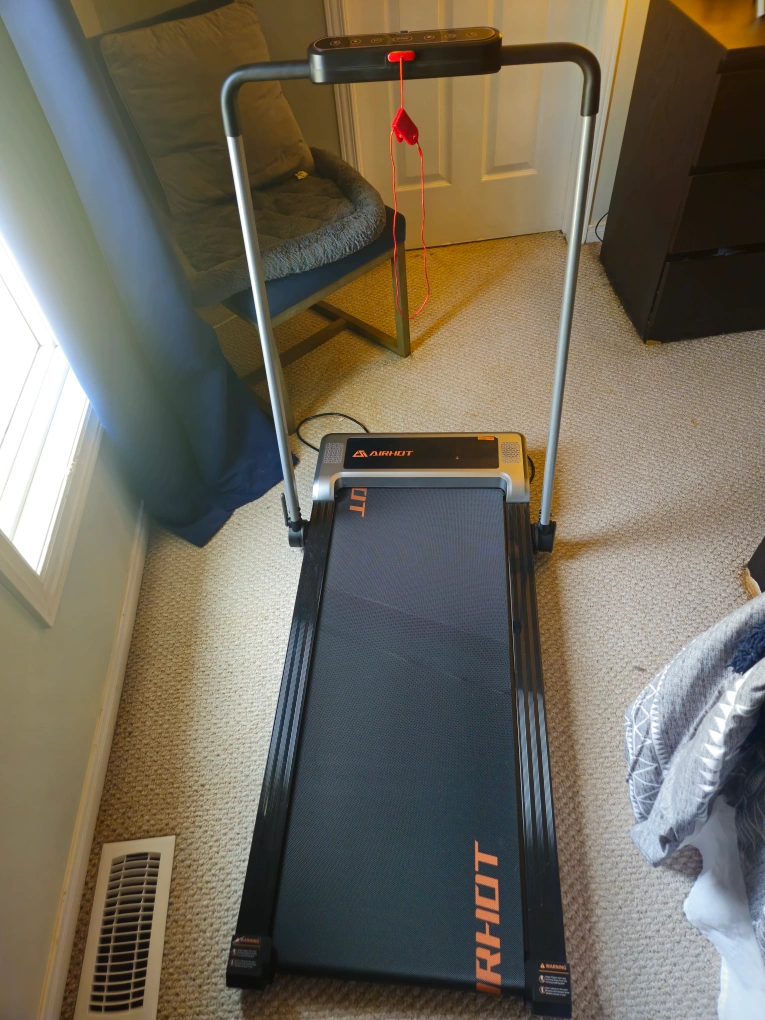 Selling an Airhot treadmill, model P2-D. It's in great condition and ready for a new home! It has a weight capacity of 265lbs and a motor peak of 2.5HP. It also comes with a remote!