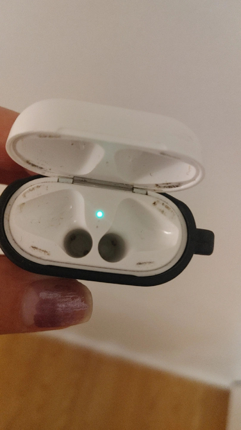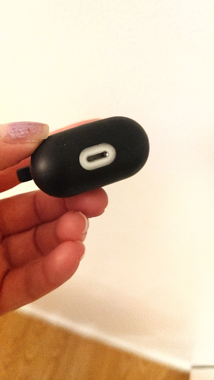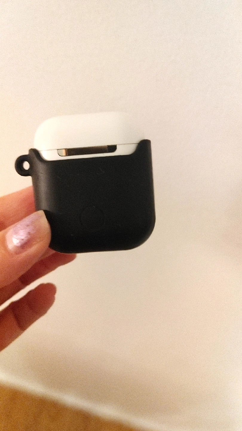 63Selling an AirPods charging case with a cute black cat silicone case! It has a black silicone case with a cat design on it. The charging port is visible at the bottom of the case.