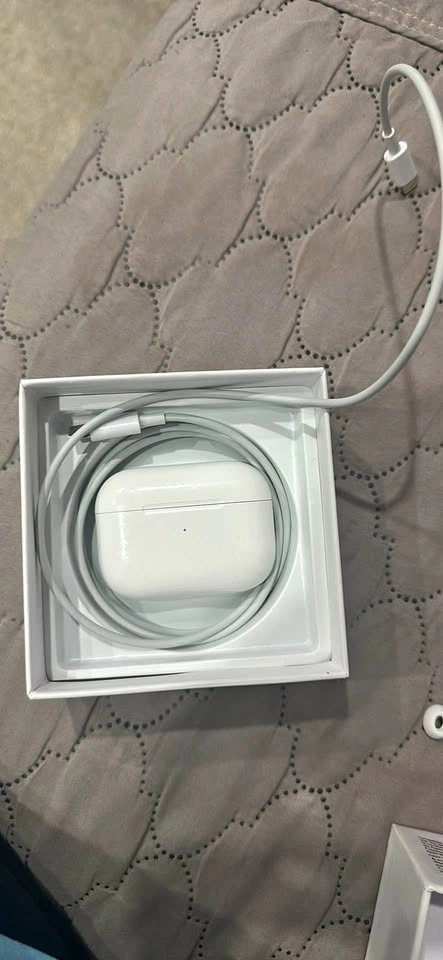 15Gently used, with minor box damage, but all original information and contents are intact. Includes a charger (no plug) and two sizes of ear tips for a comfortable fit. The plug in type is USB-C which is iPhone charger. Also I can give you a AirPod case with it.