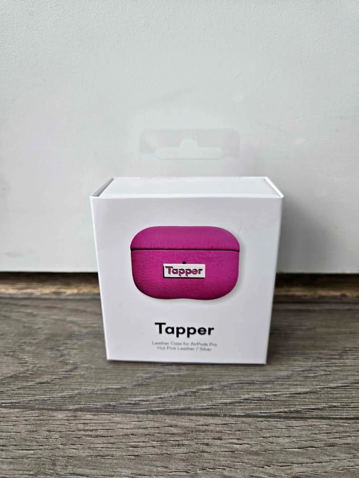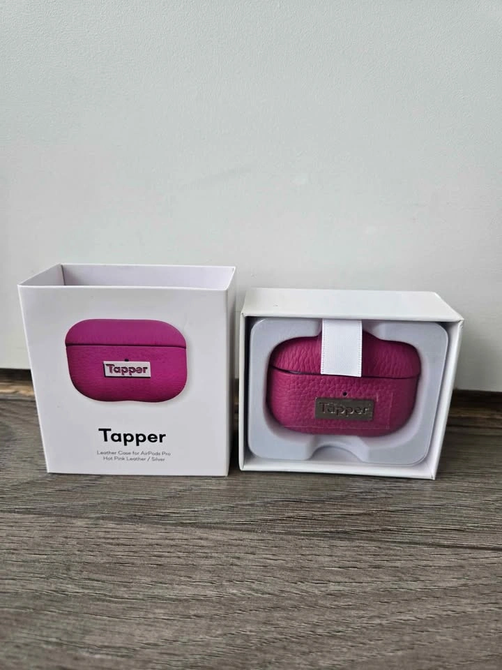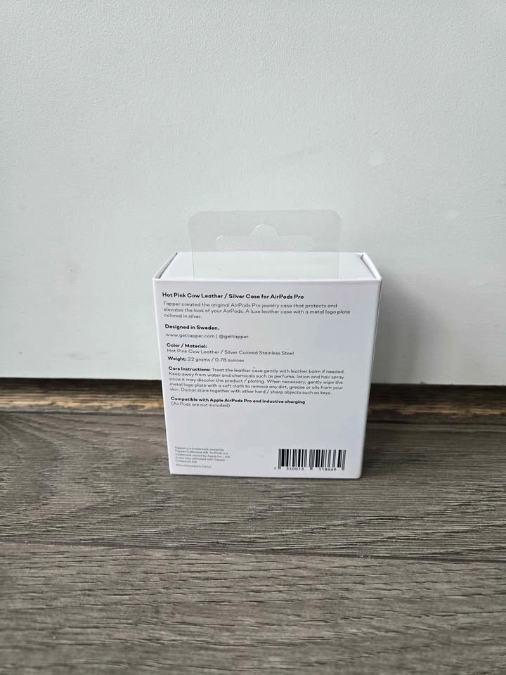Cow leather case -Silver colored stainless steel logo plate -Polycarbonate case core AIRPODS ARE NOT INCLUDED. RRP: $108