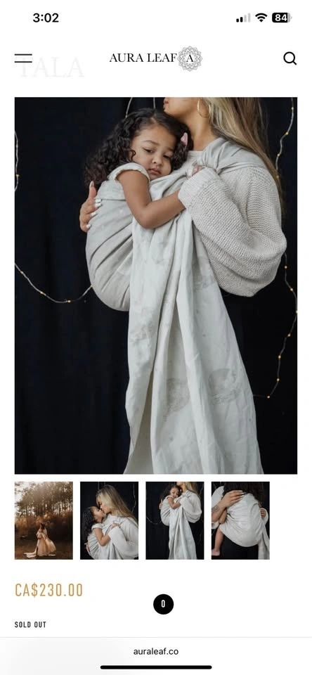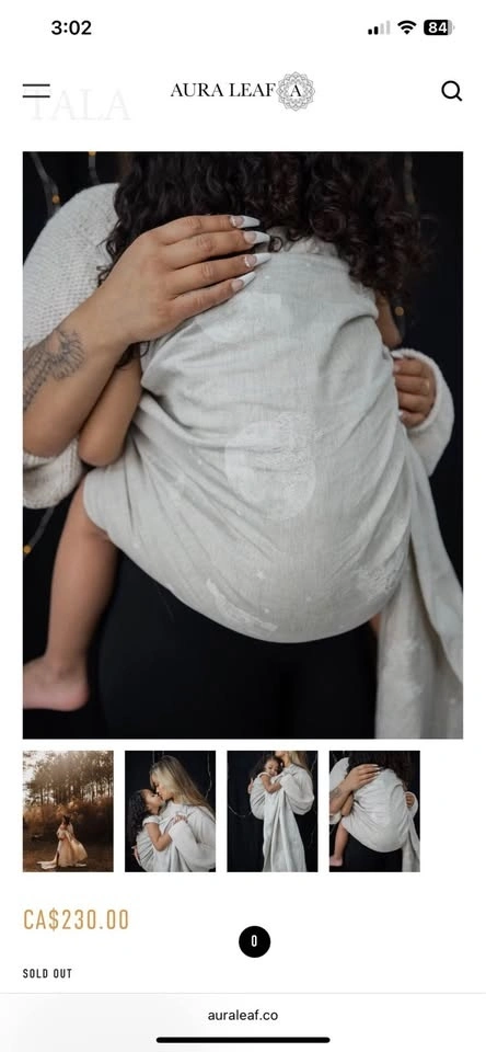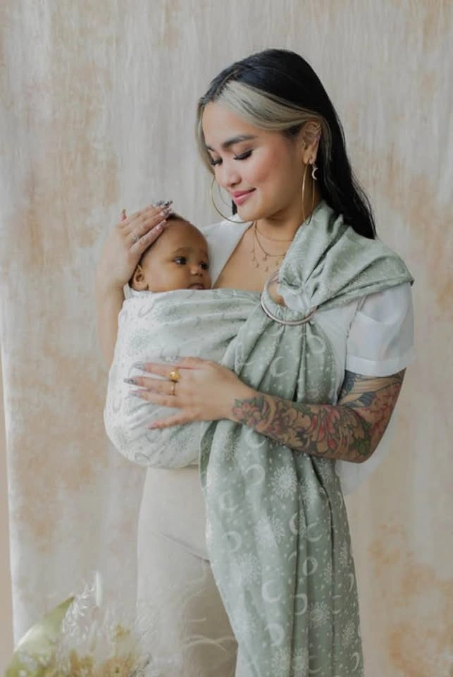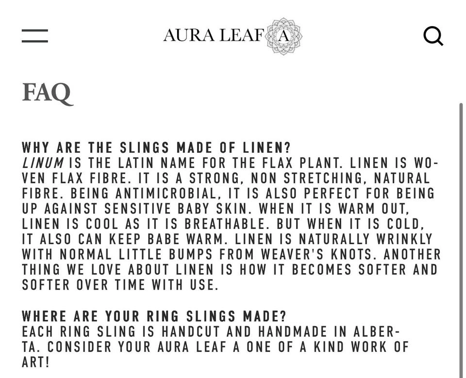 Aura Ring Sling in dark green. Made from 100% linen, a natural, antimicrobial fiber. Good used condition, just a bit wrinkly from being packed. Made by a small company in Alberta, Canada. Originally over $200.