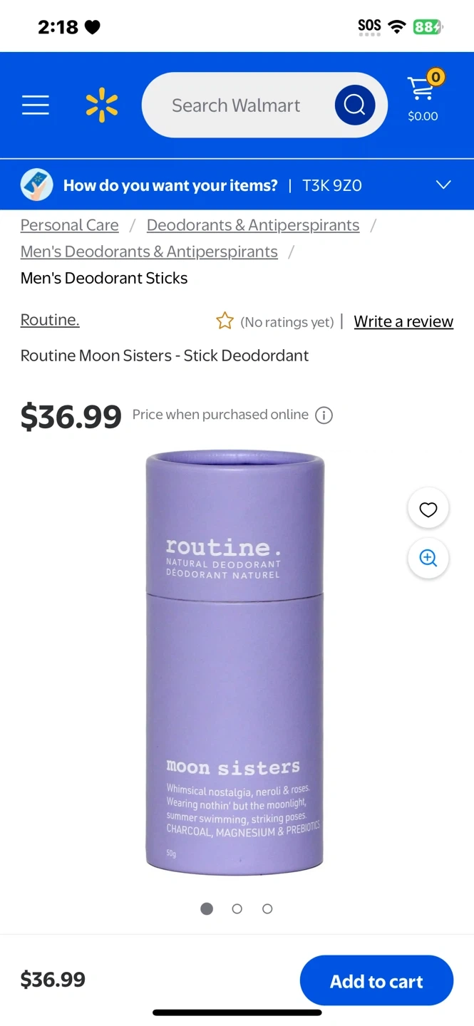 Routine natural deodorant in the 'Moon Sisters' scent. Contains charcoal, magnesium, and prebiotics. Each stick is 50g.