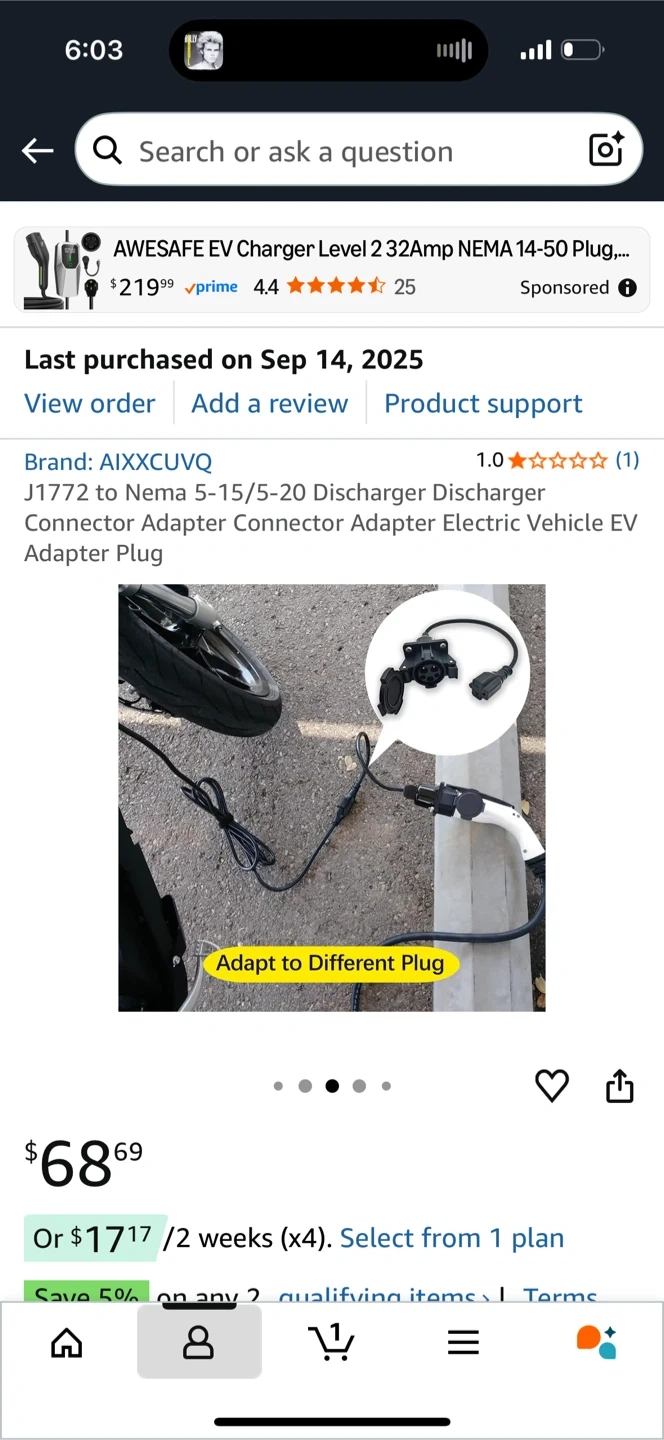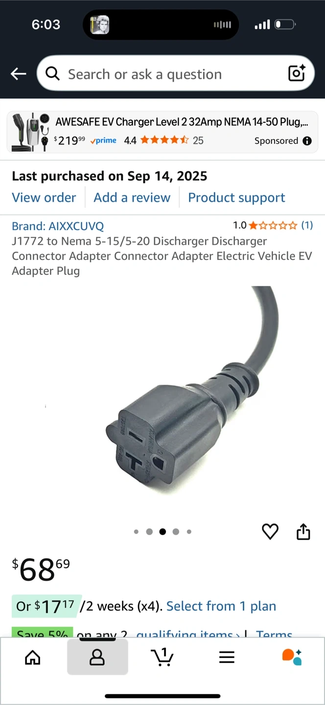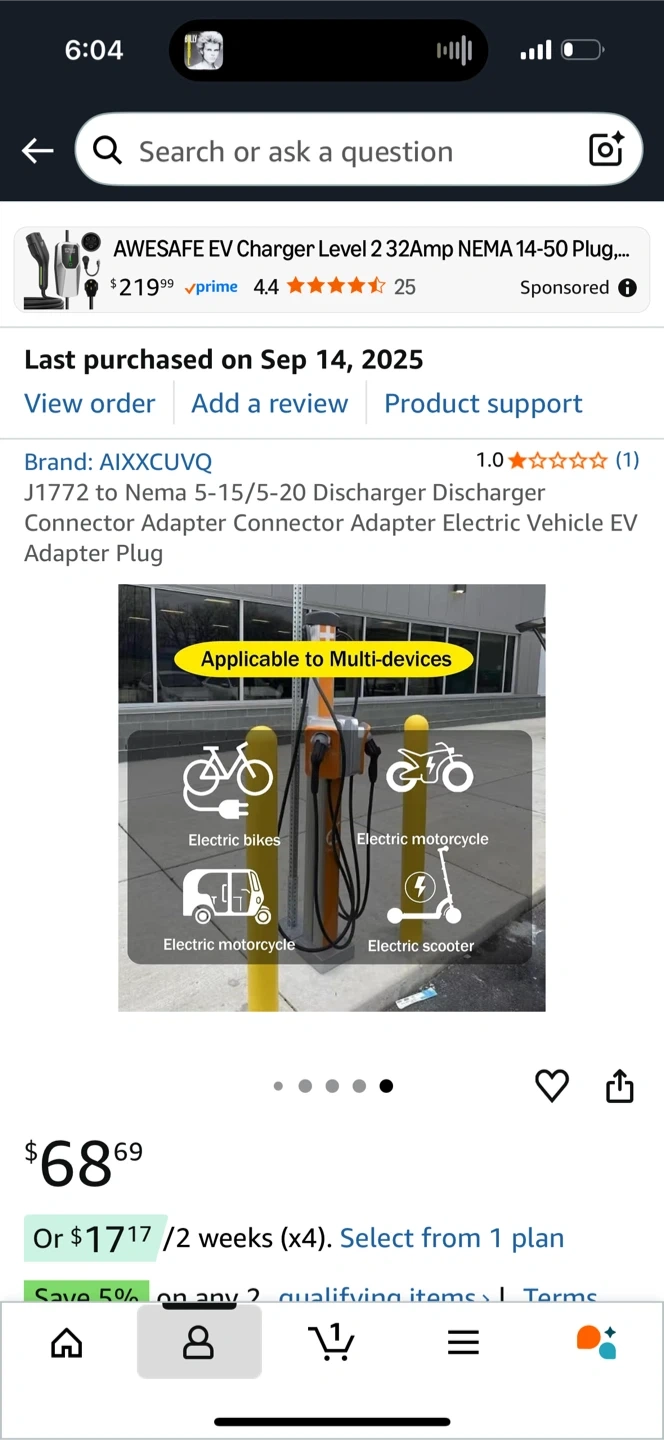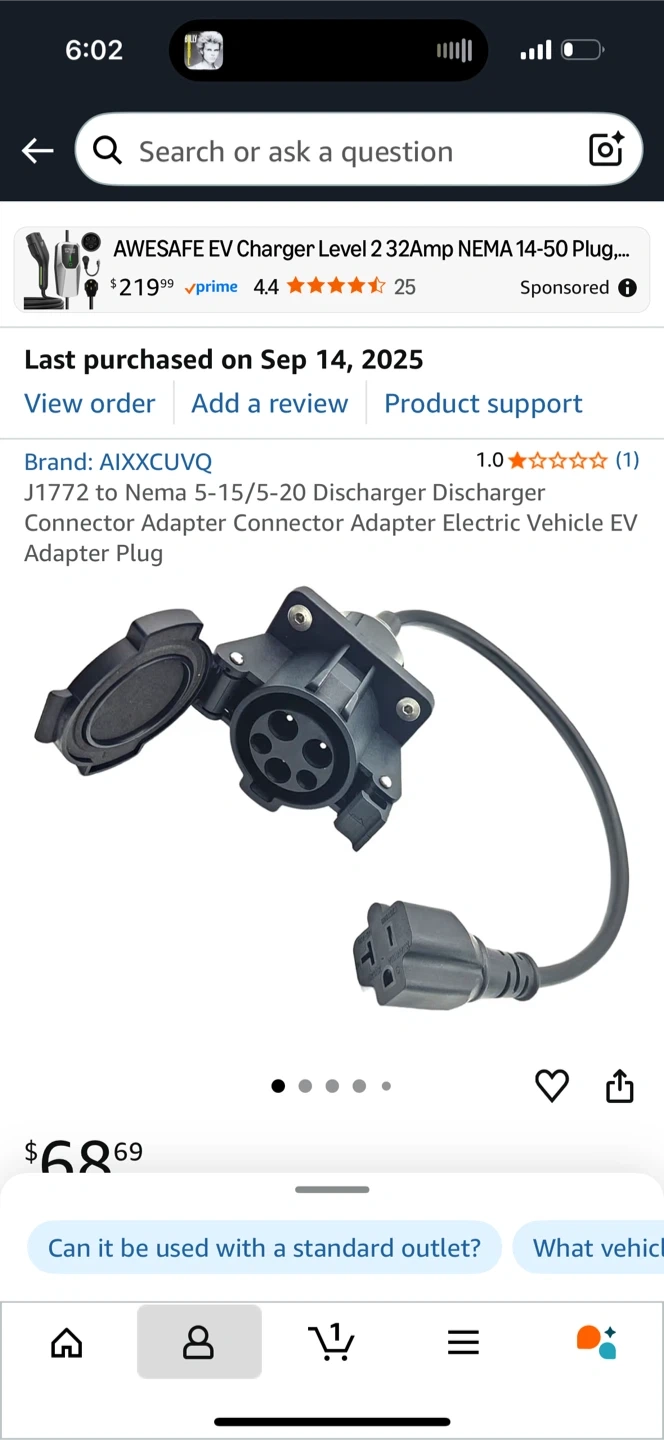 0Selling an AIXXCUVQ J1772 to Nema 5-15/5-20 Discharger Connector Adapter. It's an adapter for electric vehicles.