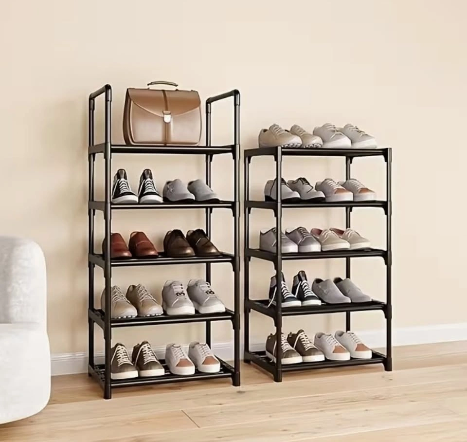 It features a sleek and sturdy frame with shelves that hold shoes or other household items.