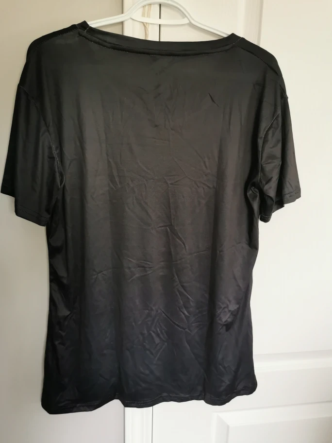 This new XL black T-shirt features a striking wolf design, split between fire and ice, making it a unique statement piece.