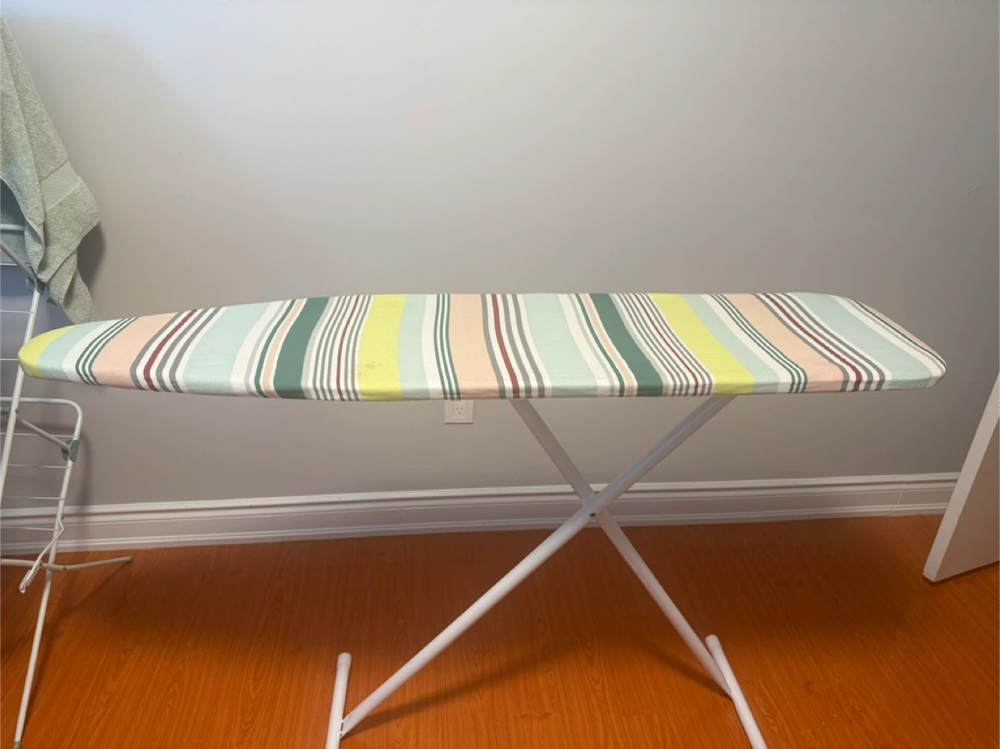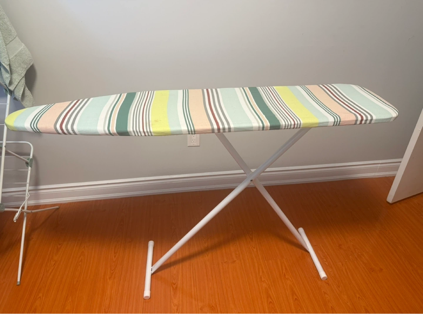 Here's a striped ironing board ready for a new home! It's in like new and perfect for getting your clothes wrinkle-free