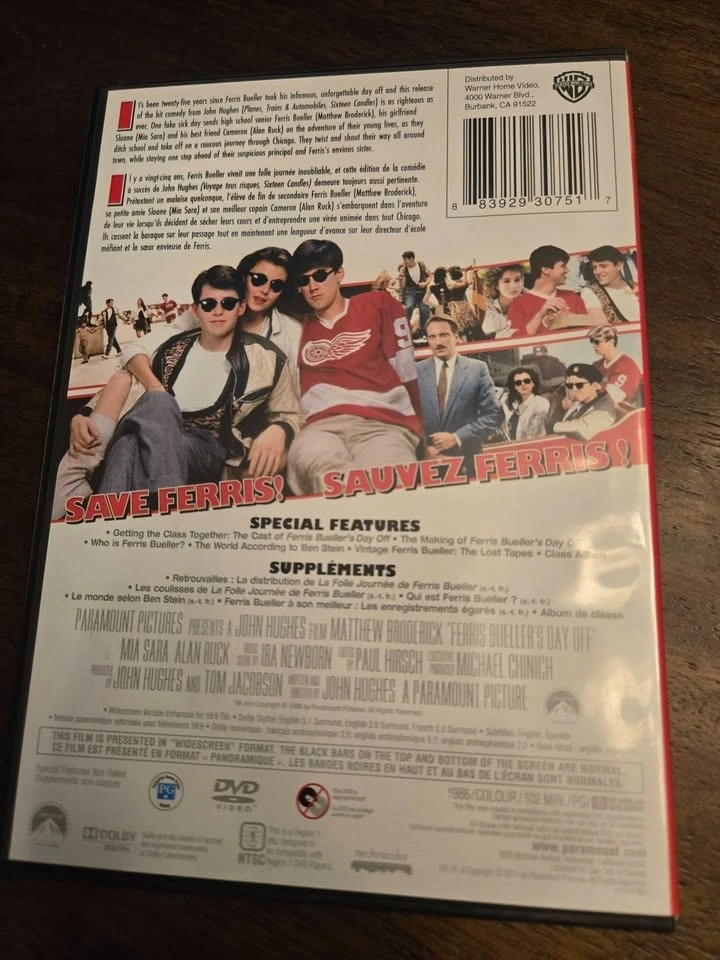 Ferris Bueller's Day Off on DVD brings John Hughes' iconic 80s comedy about a charismatic teen faking sick for a wild Chicago adventure, starring Matthew Broderick, Alan Ruck, and Mia Sara, to your home.