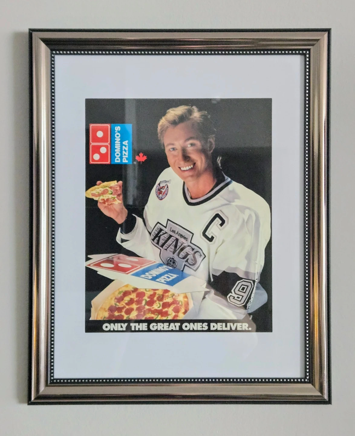 Vintage Framed 1994 Wayne Gretzky Domino's Pizza Ad.