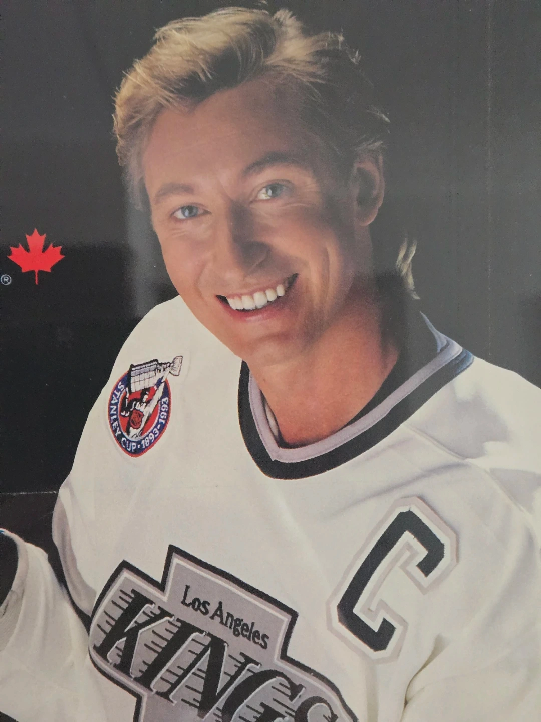 Score a piece of hockey history, this is the classic "Only The Great Ones Deliver" himself Wayne Gretzky in his iconic Los Angeles Kings Captains Jersey. This is a must have for any Gretzky Collector or for someone looking to add some 90's flare to there home bar, office or Man Cave.