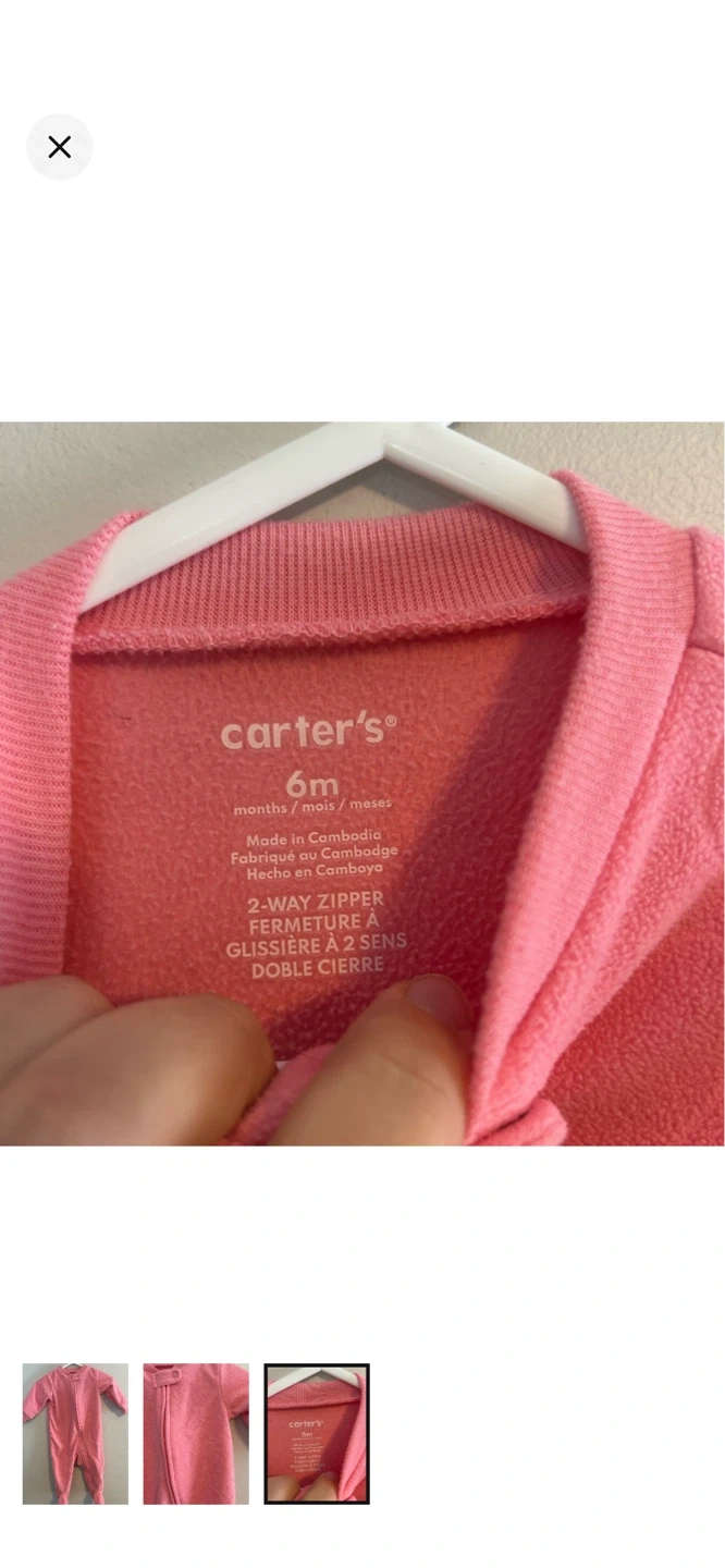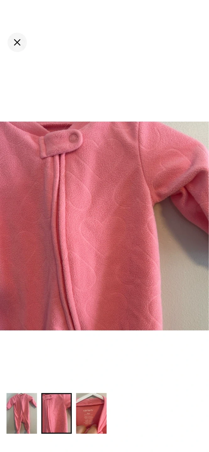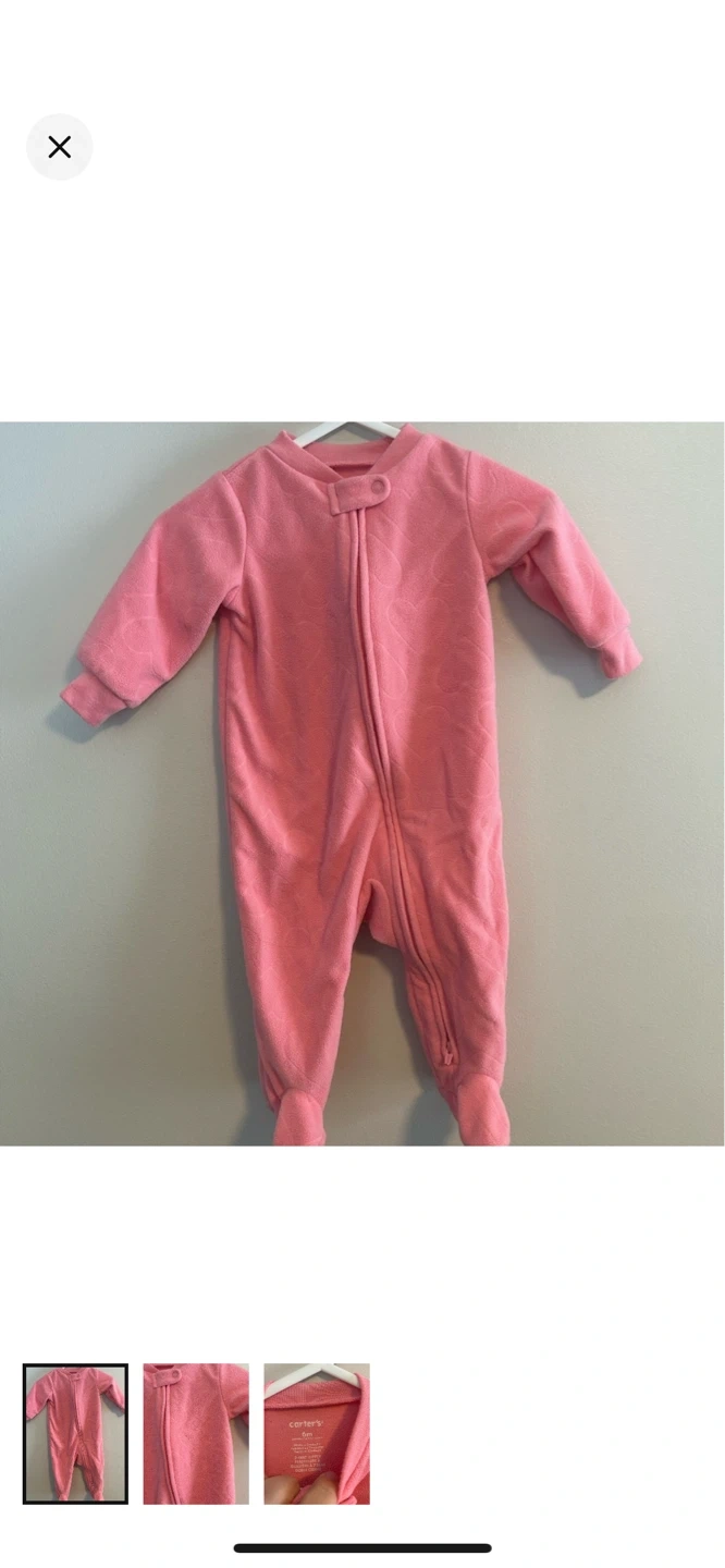 Carters brand. Fleece zip up sleeper. Pink textured heart print. Size 6m. Brand new condition $8