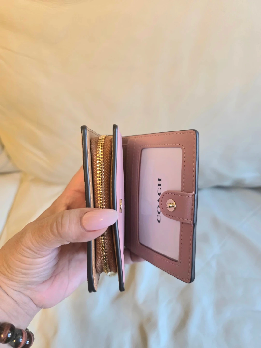 Coach Snap Wallet In Signature Canvas With Charm - Powder Pink
