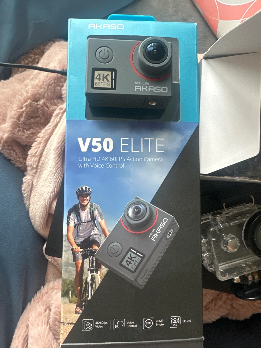 Selling an Akaso V50 Elite action camera in excellent condition! Key features: - Ultra HD 4K 60FPS video recording - Voice control - Waterproof case (up to 131ft/40M) - 8X Zoom - Touch screen - Adjustable view angle What's in the box: - Action camera - Waterproof case - Remote control - Battery charger - Battery - Mount - Helmet mount - USB cable - Protective backdoor - Handlebar mount - Zip tie - Strap - Lens cloth - Quick start guide Capture every moment with one click!