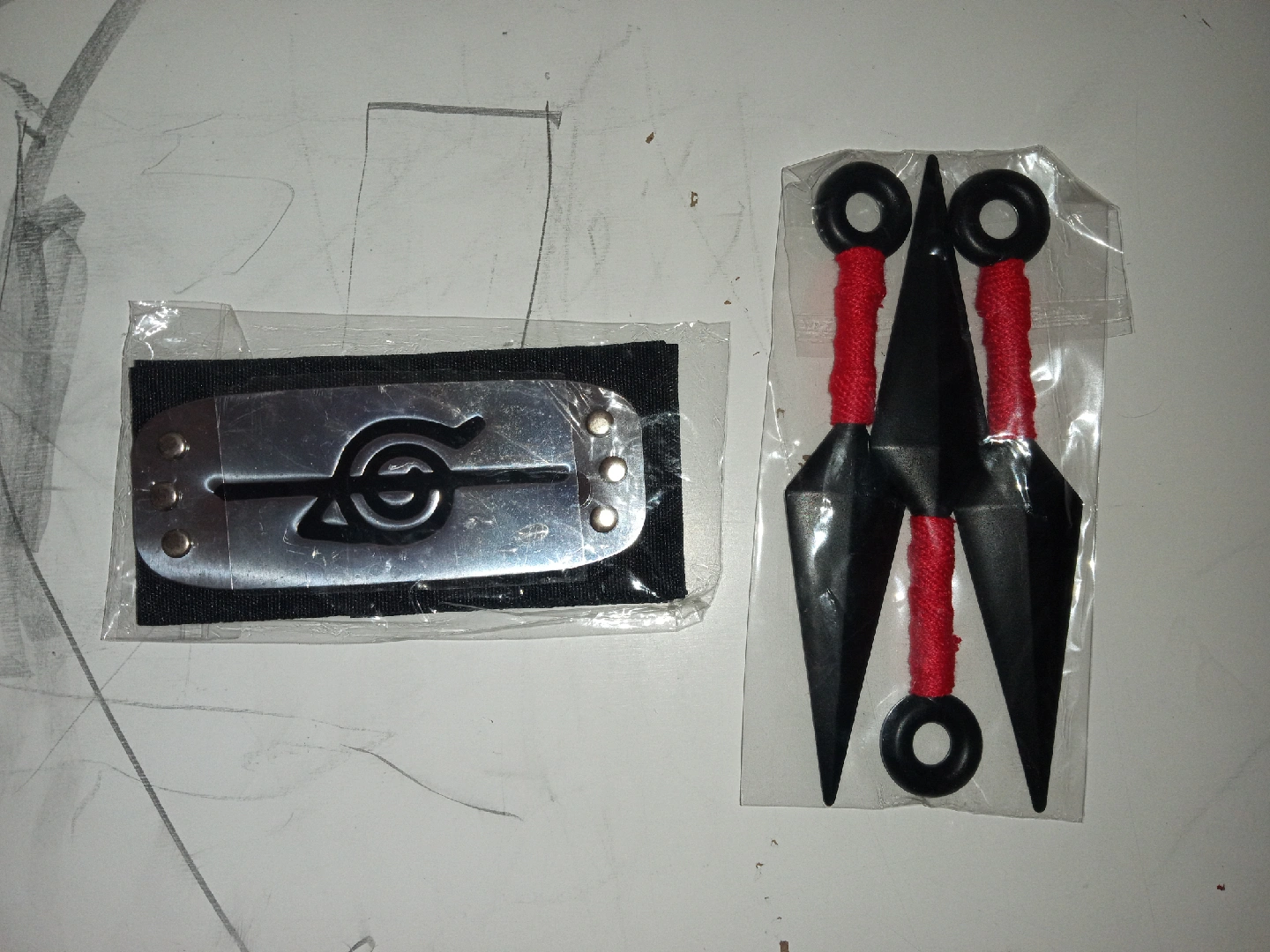 Selling an Akatsuki cloak set. The set includes the cloak, a kunai, a shuriken, a ring, and a necklace. The cloak is a size medium. Perfect for any Naruto fan! (Take advantage of the fact that Halloween is taking shape)