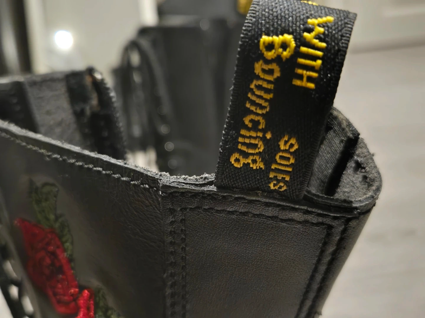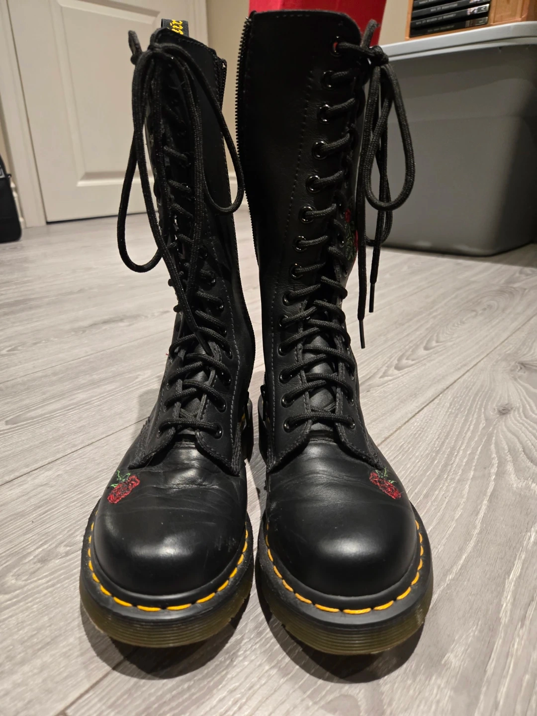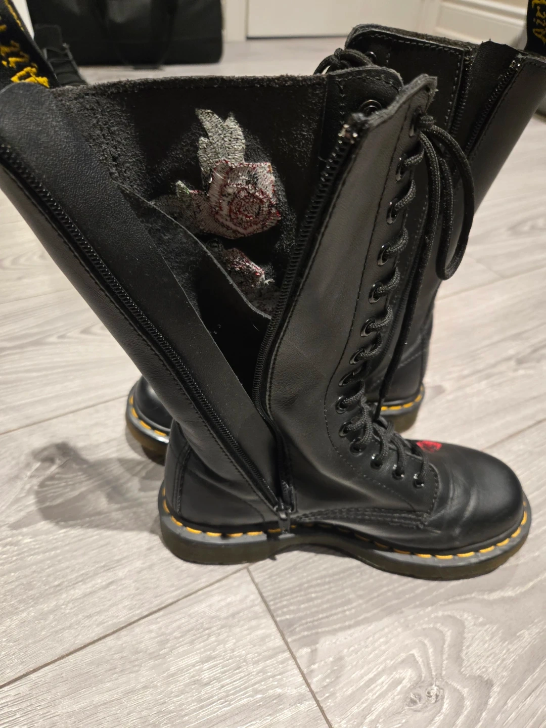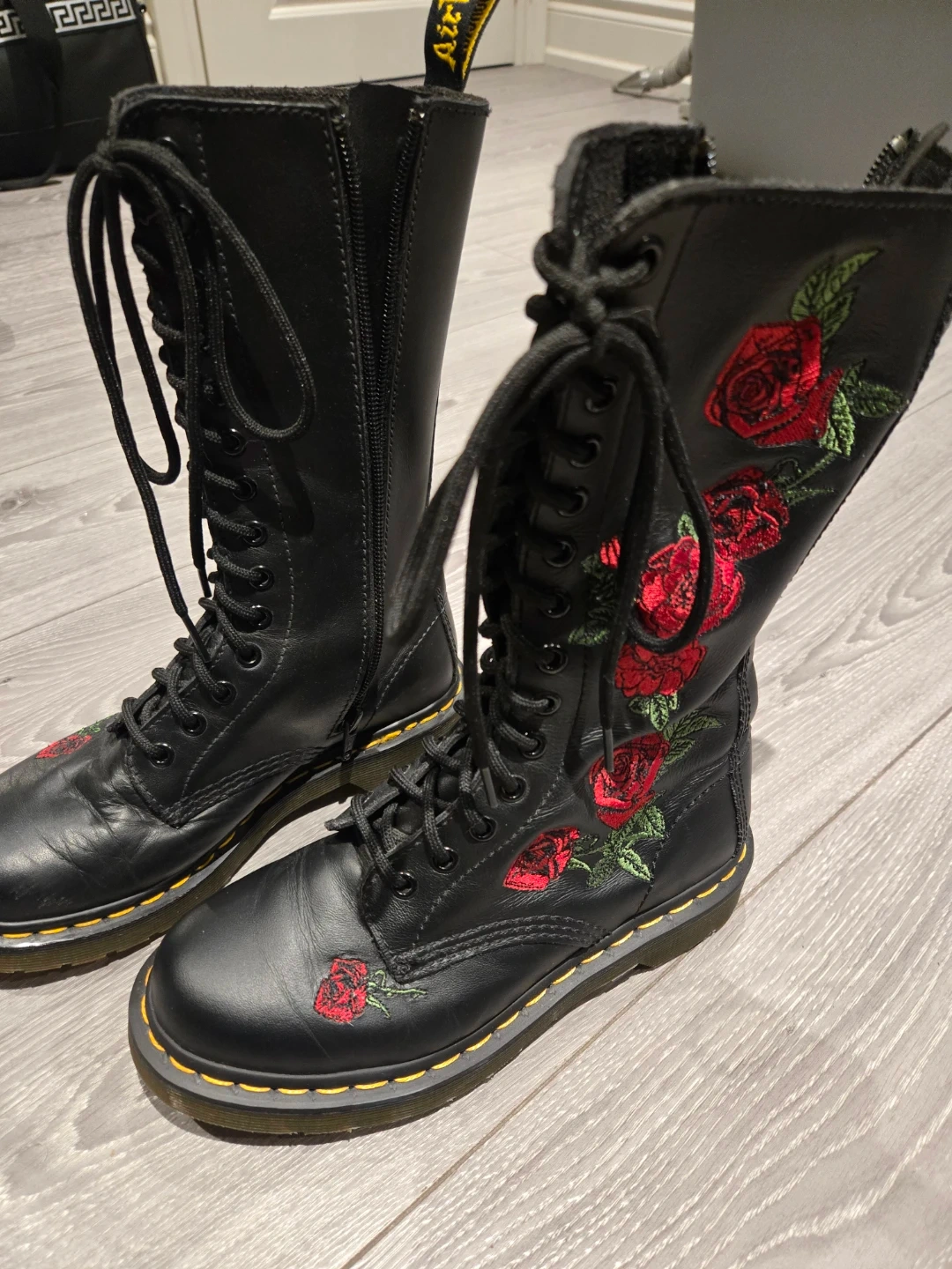 Doc martens Vonda side zipper + laces with rose embroidered pattern!