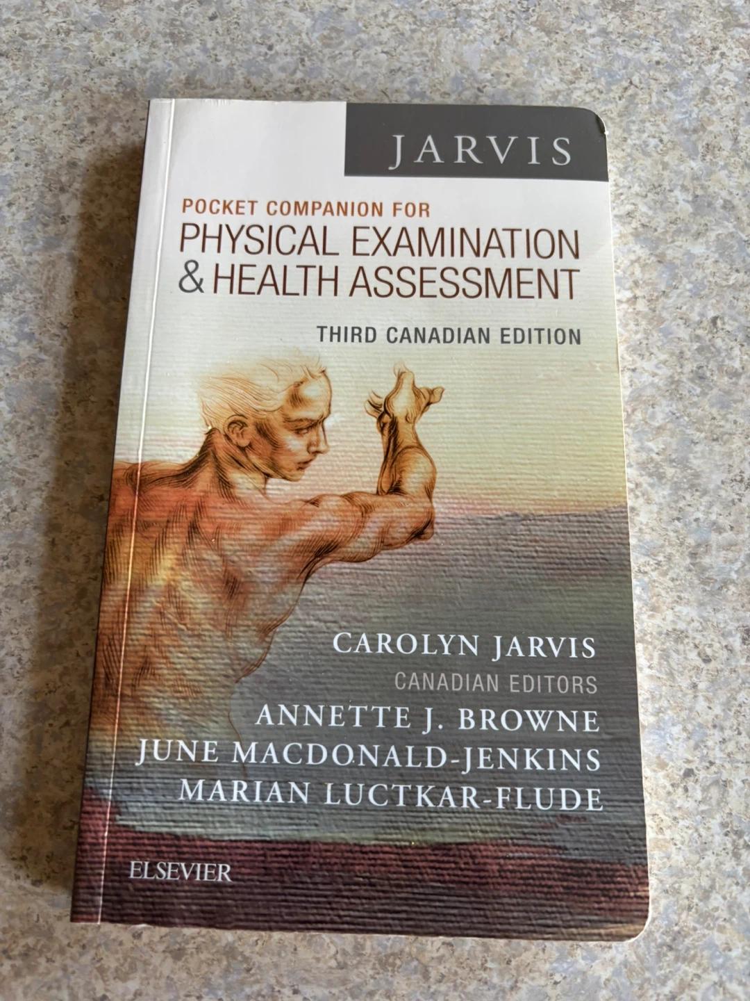 This is the Third Canadian Edition of Jarvis's Pocket Companion for Physical Examination & Health Assessment. It's authored by Carolyn Jarvis with Canadian editors Annette J. Browne, June MacDonald-Jenkins, and Marian Luctkar-Flude, published by Elsevier. This guide is essential for healthcare professionals conducting patient assessments.