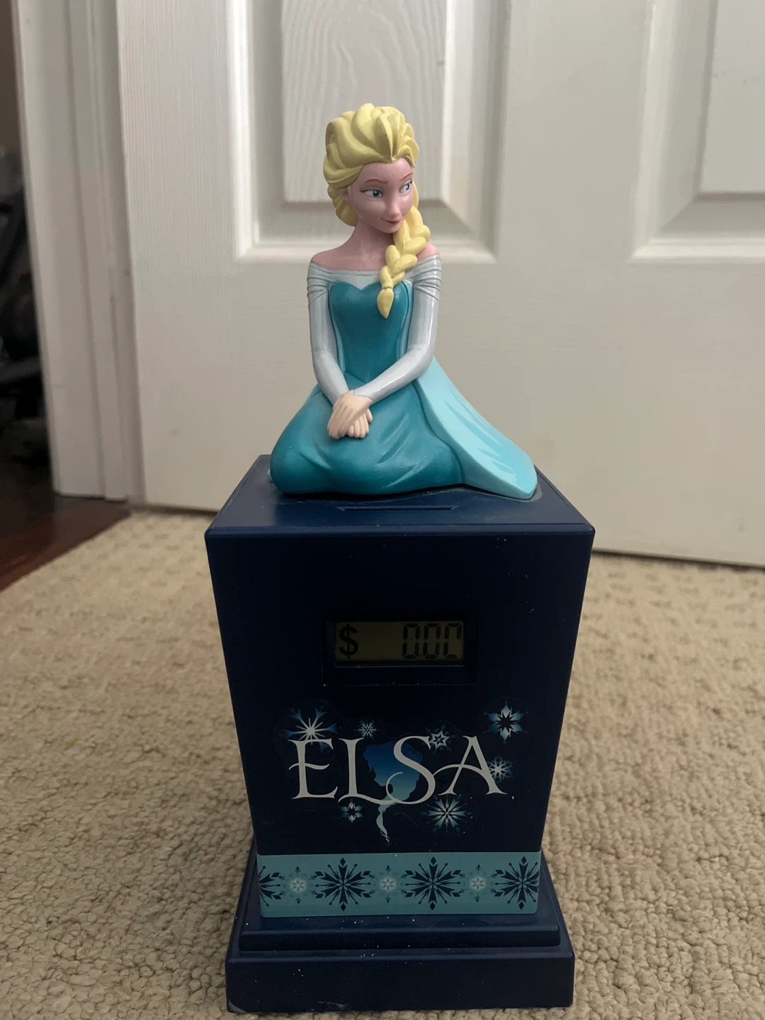 This is an Elsa coin bank from Disney's Frozen. It's in good condition and ready to help your little one save their pennies!