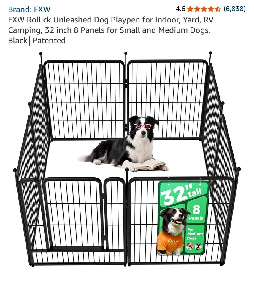 FXW Dog Playpen - 32 inch, 8 Panels, Black Metal
