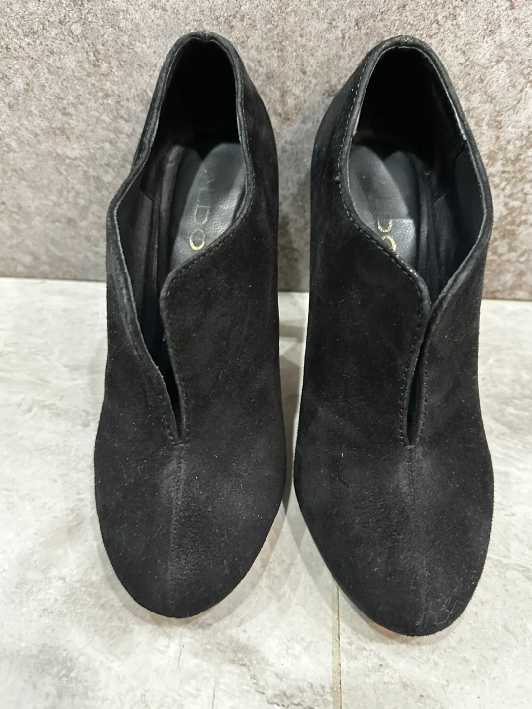 Buy & SellAldo Black Suede Heeled BootiesAldo Black Suede Heeled Booties$40Selling a pair of Aldo black suede heeled booties. They're in good condition, have been wearing just couple of times.ConditionLike newSize6.5BrandAldo0 chats·0 favorites·21 viewsSELLERElenaSherwood362 reviewsWHERE TO MEETDerry&25