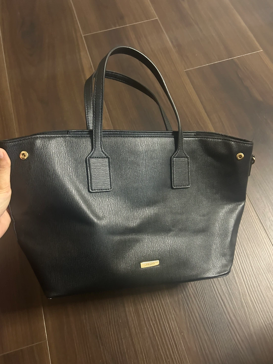 Selling a black ALDO tote bag. It's in great condition and perfect for everyday use! The bag has a spacious interior and sturdy handles.