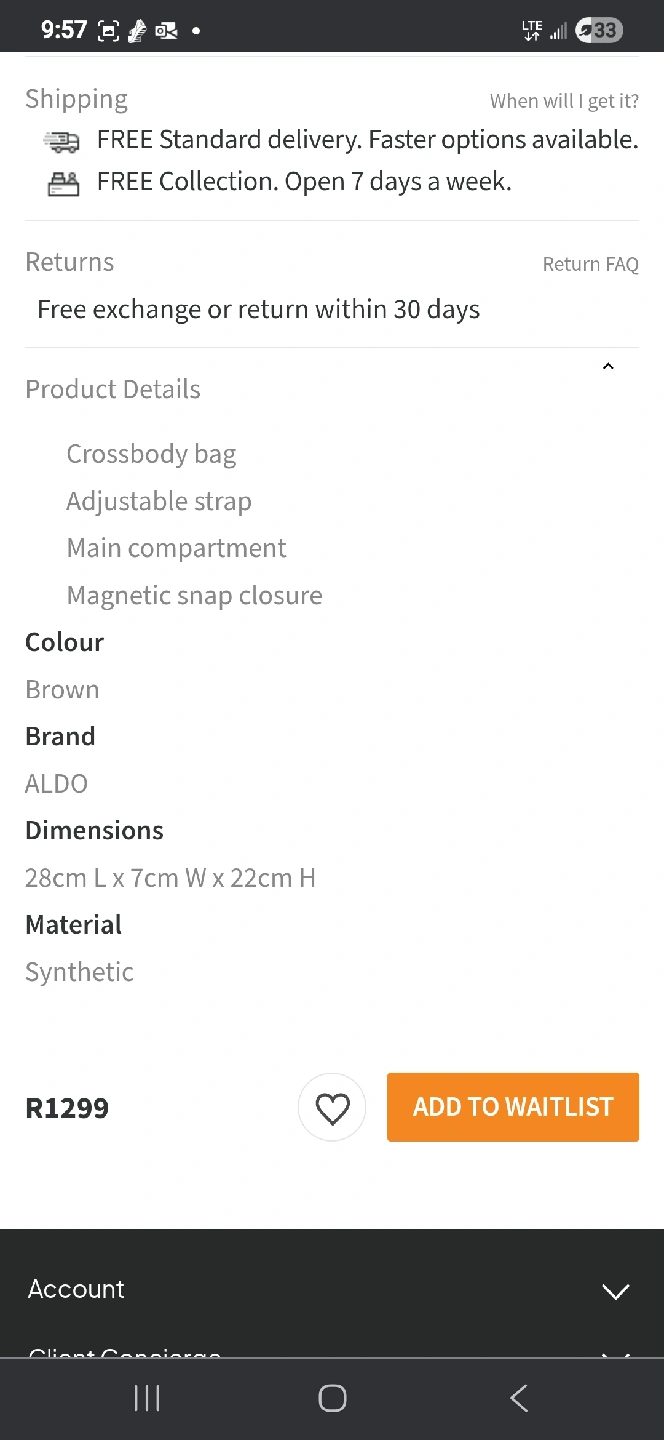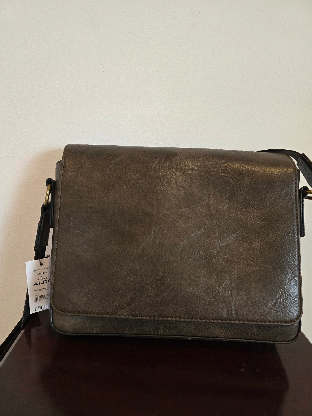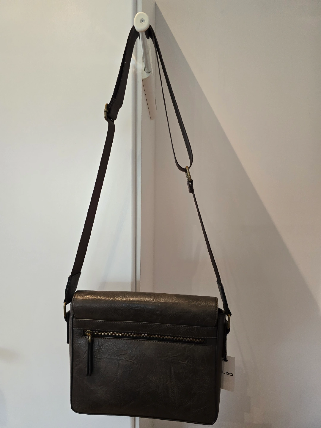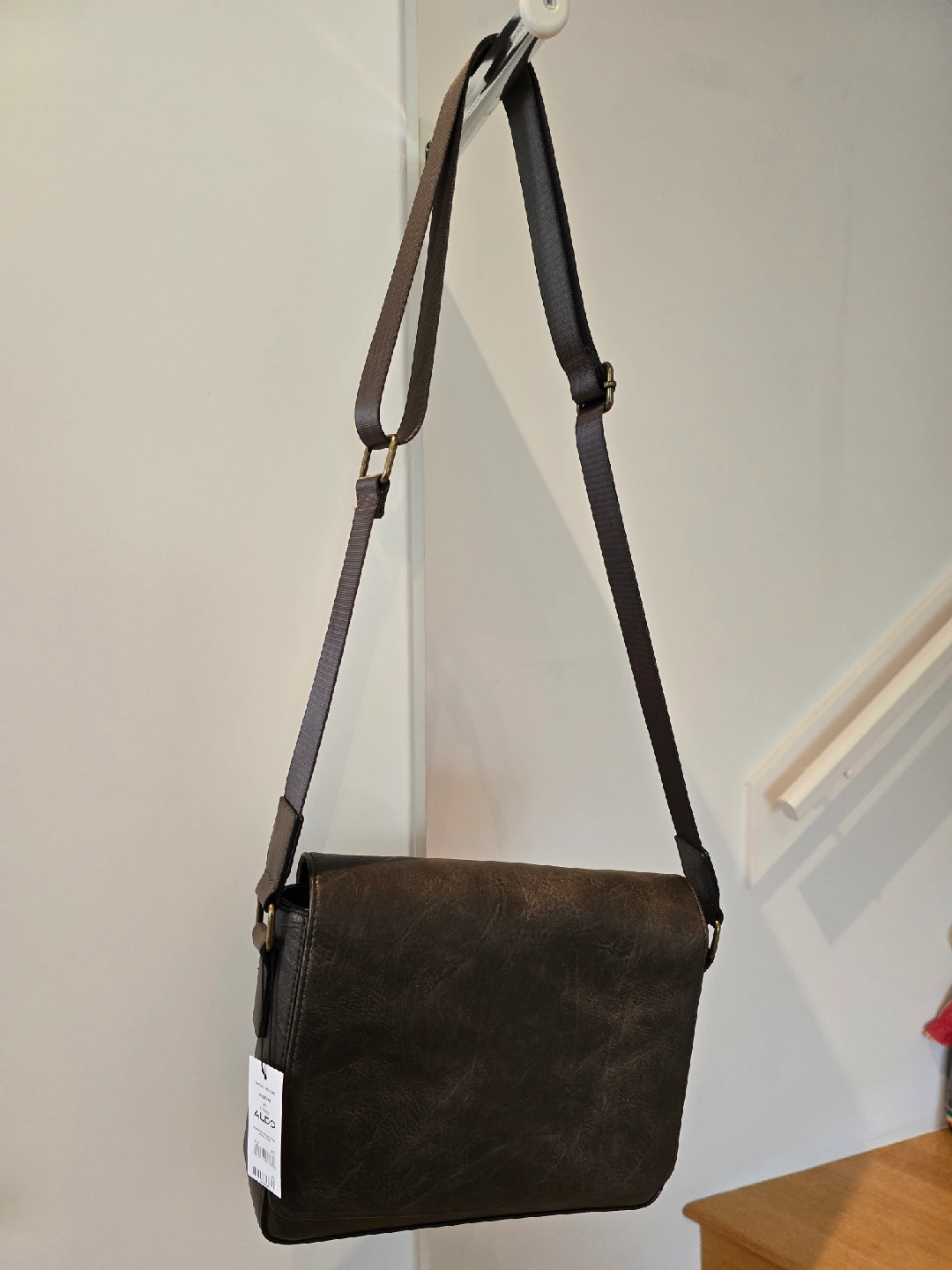 25Selling a stylish brand new Aldo messenger bag in a dark brown colour. It's perfect for carrying your essentials. The bag features a convenient shoulder strap and a sleek design.