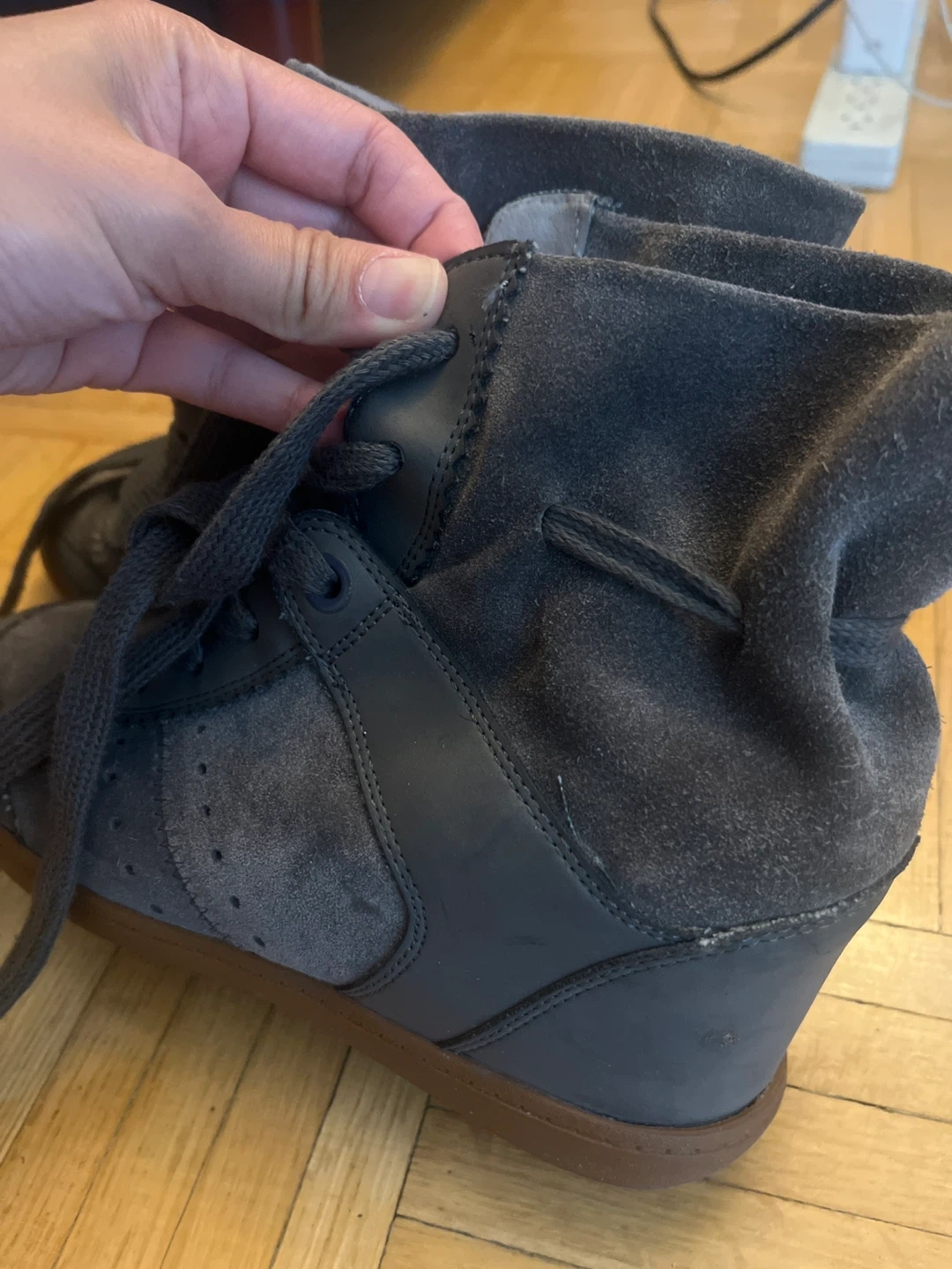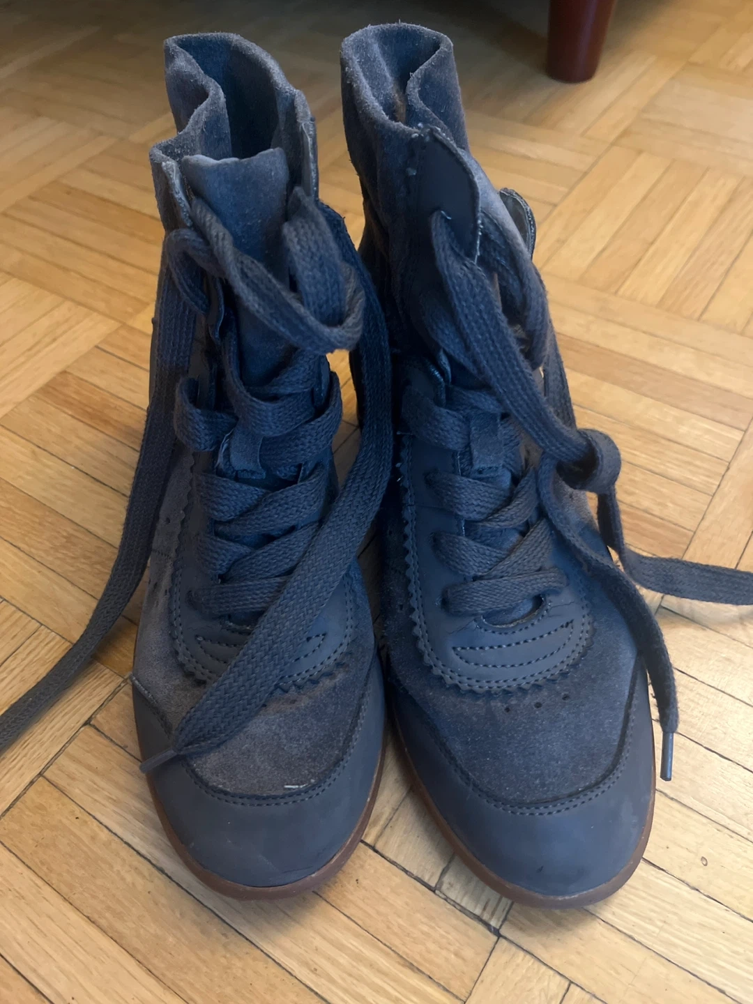 Selling a pair of ALDO and they look like Isabel Marant wedge sneakers in grey suede. They're in great shape and super stylish! Perfect for adding a bit of height while staying comfy