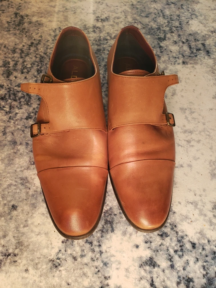 10Selling a pair of Aldo monk strap dress shoes. They're in good condition and are a size 11. Perfect for dressing up!
