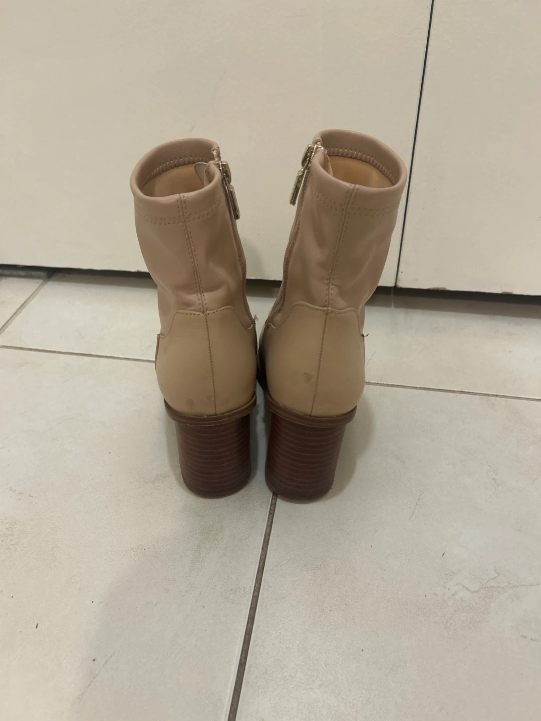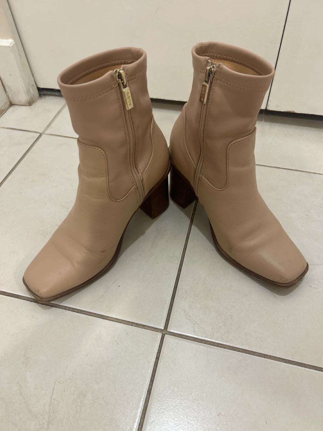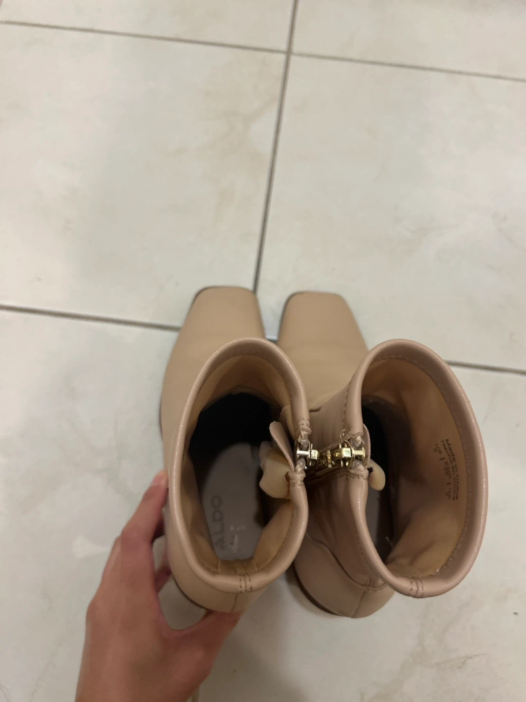 109Selling a pair of Aldo ankle boots in a lovely pink colour! They are a size 7 and have a convenient zipper closure. There are some signs of wear, as shown in the photos, but they still have lots of life left! *Cash only please