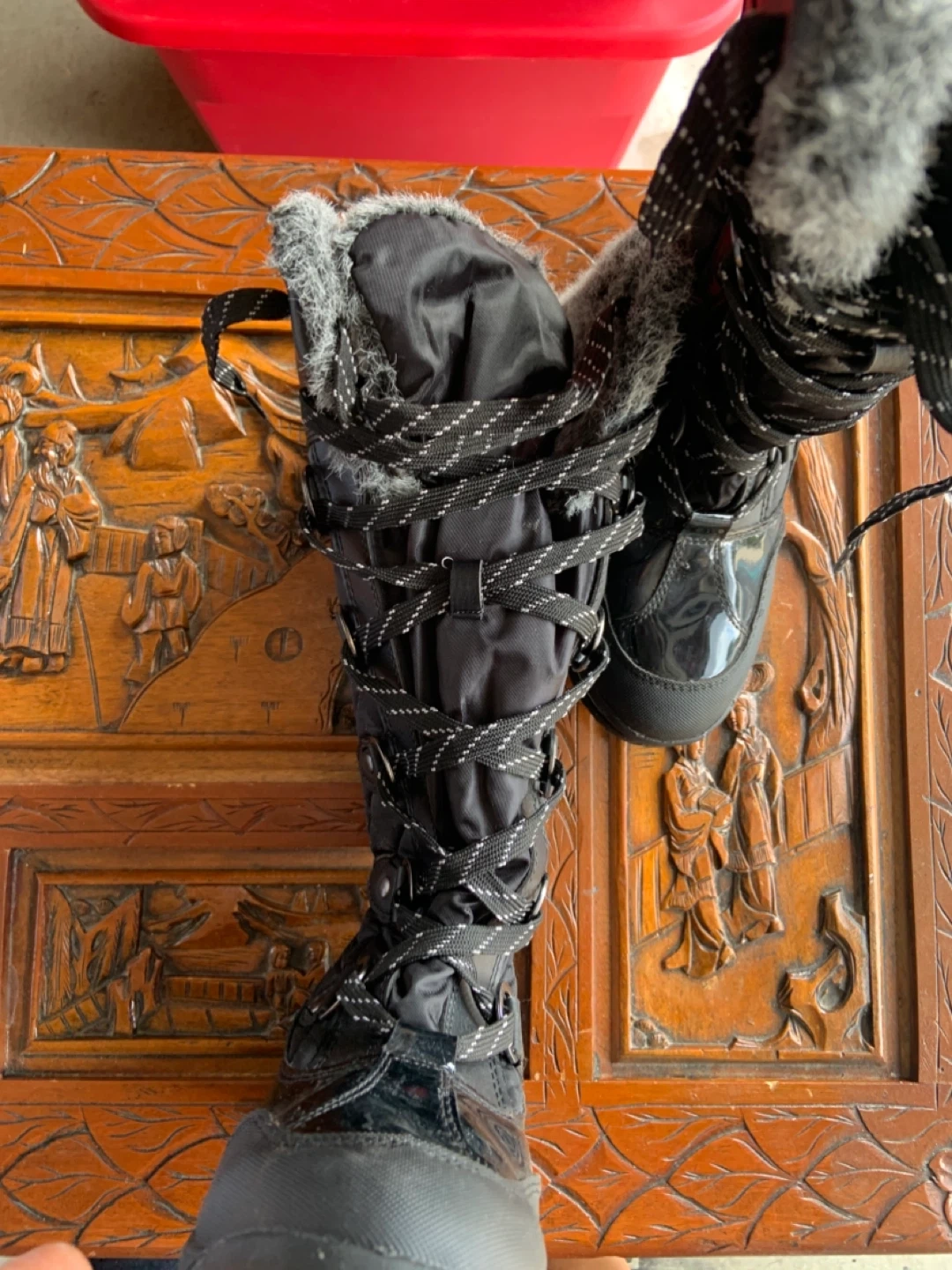 68Selling a pair of Aldo winter boots! They are waterproof and perfect for the Canadian winter. They have a lace-up design and a quilted pattern on the shaft. The soles are in good condition and ready for snow and ice