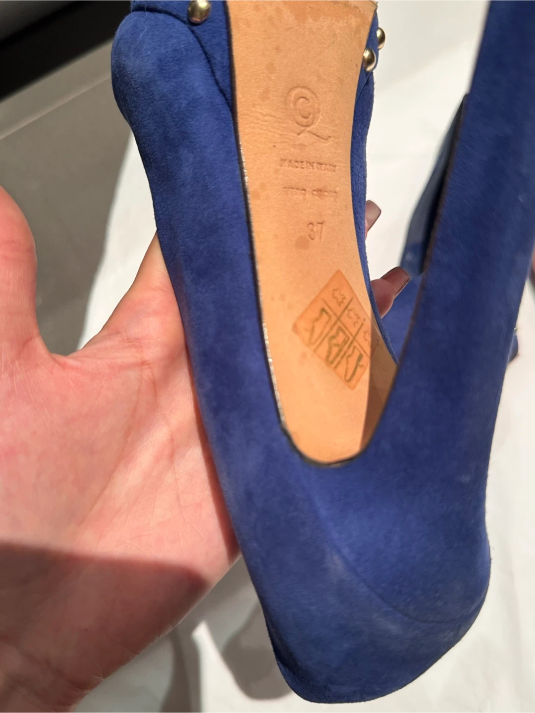 60Selling a pair of Alexander McQueen heels in a vibrant blue suede! They are size 37 and feature a unique skull detail. Perfect for adding a touch of edgy elegance to any outfit