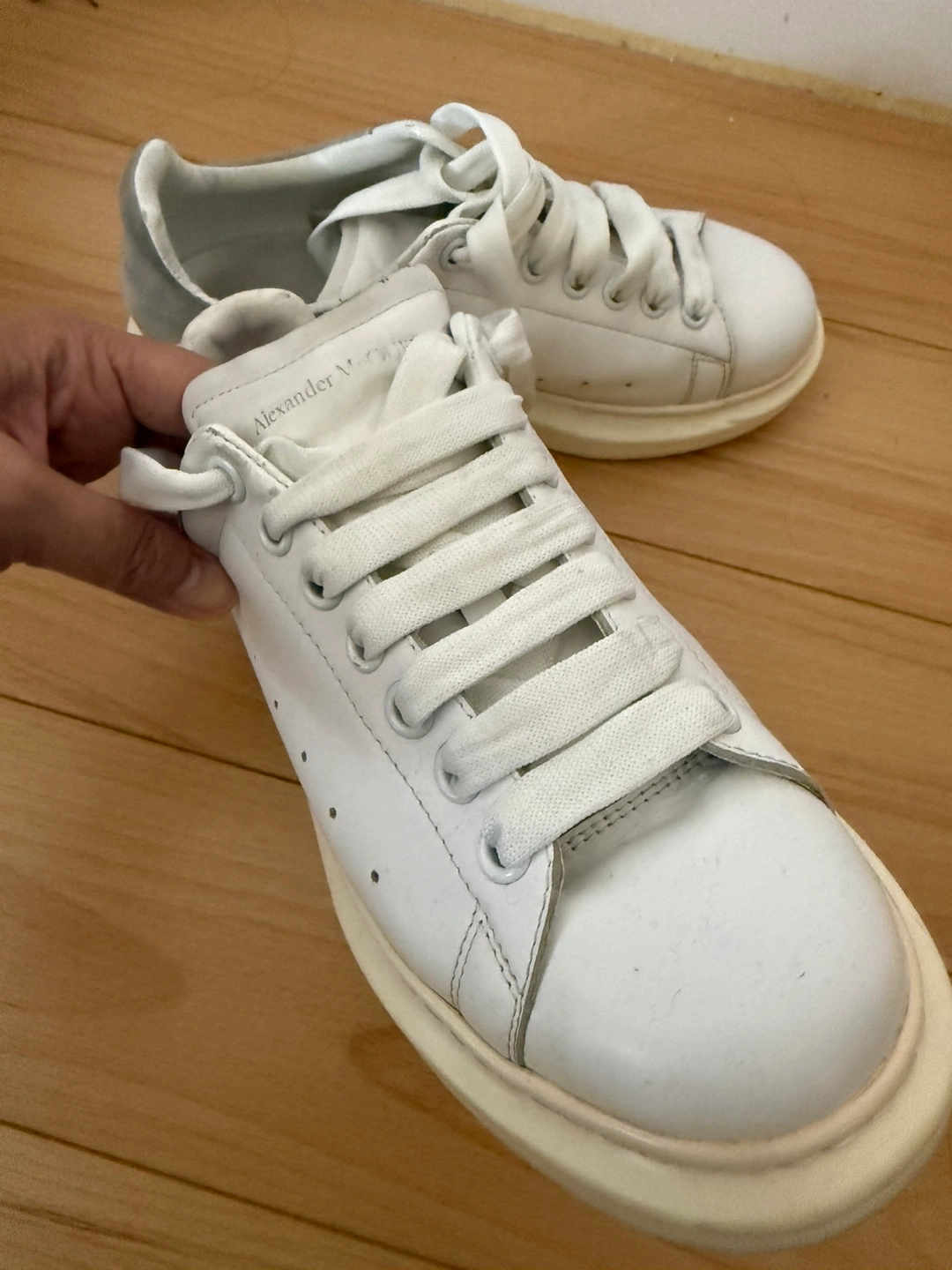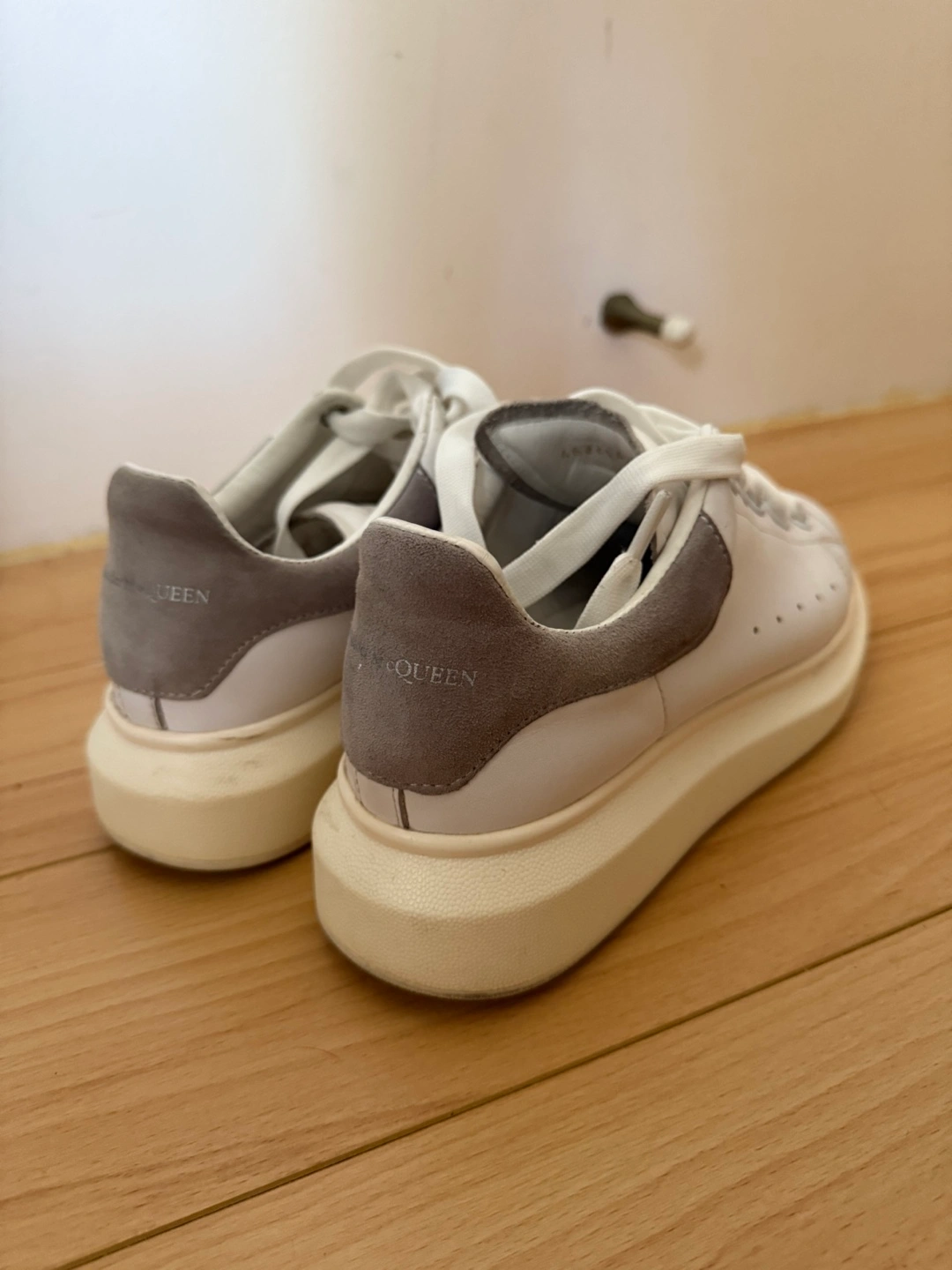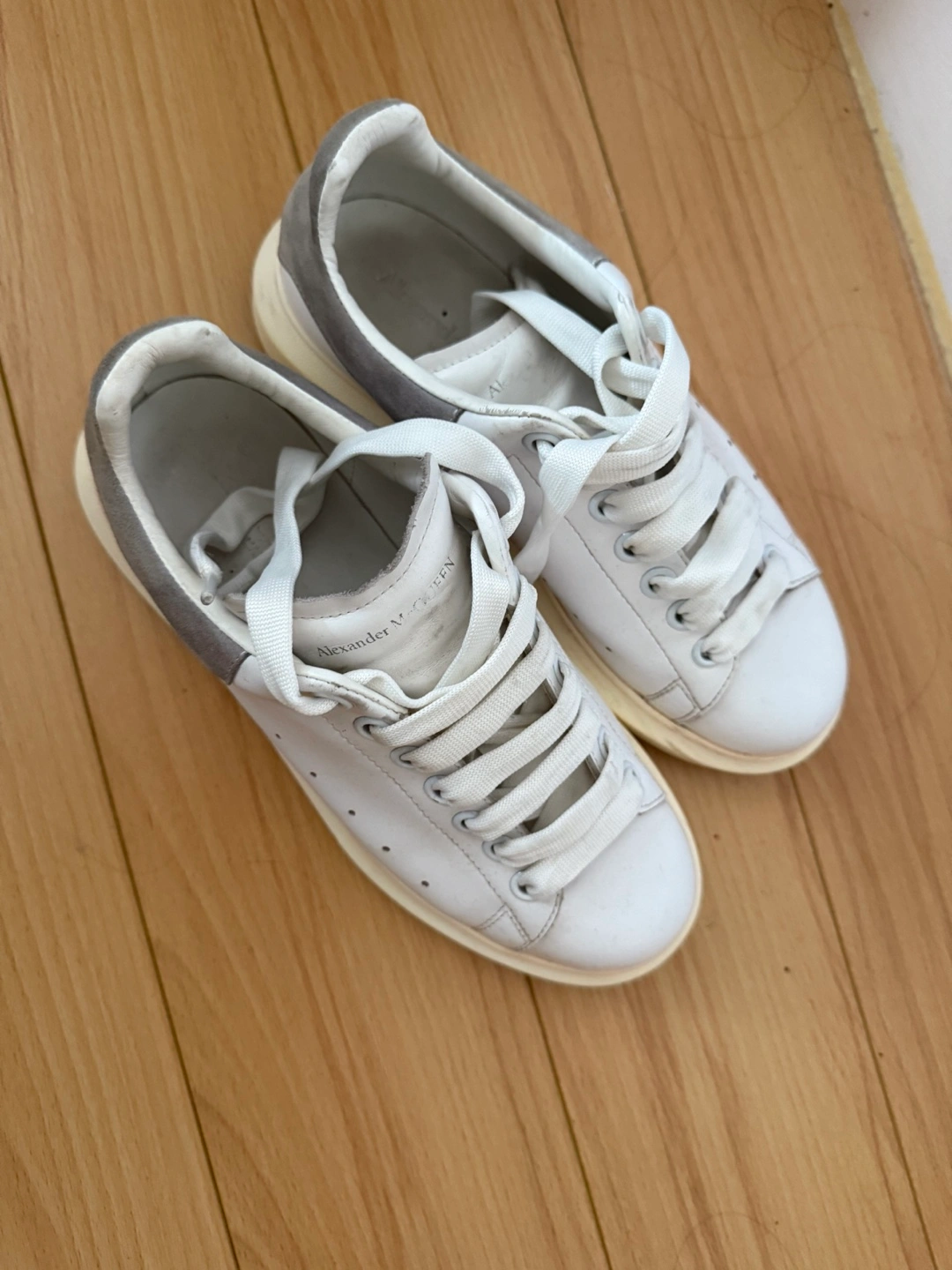 262Selling a pair of Alexander McQueen sneakers in white leather. These are in good condition and have a stylish, chunky sole. Perfect for adding a bit of edge to your everyday look! Unisex