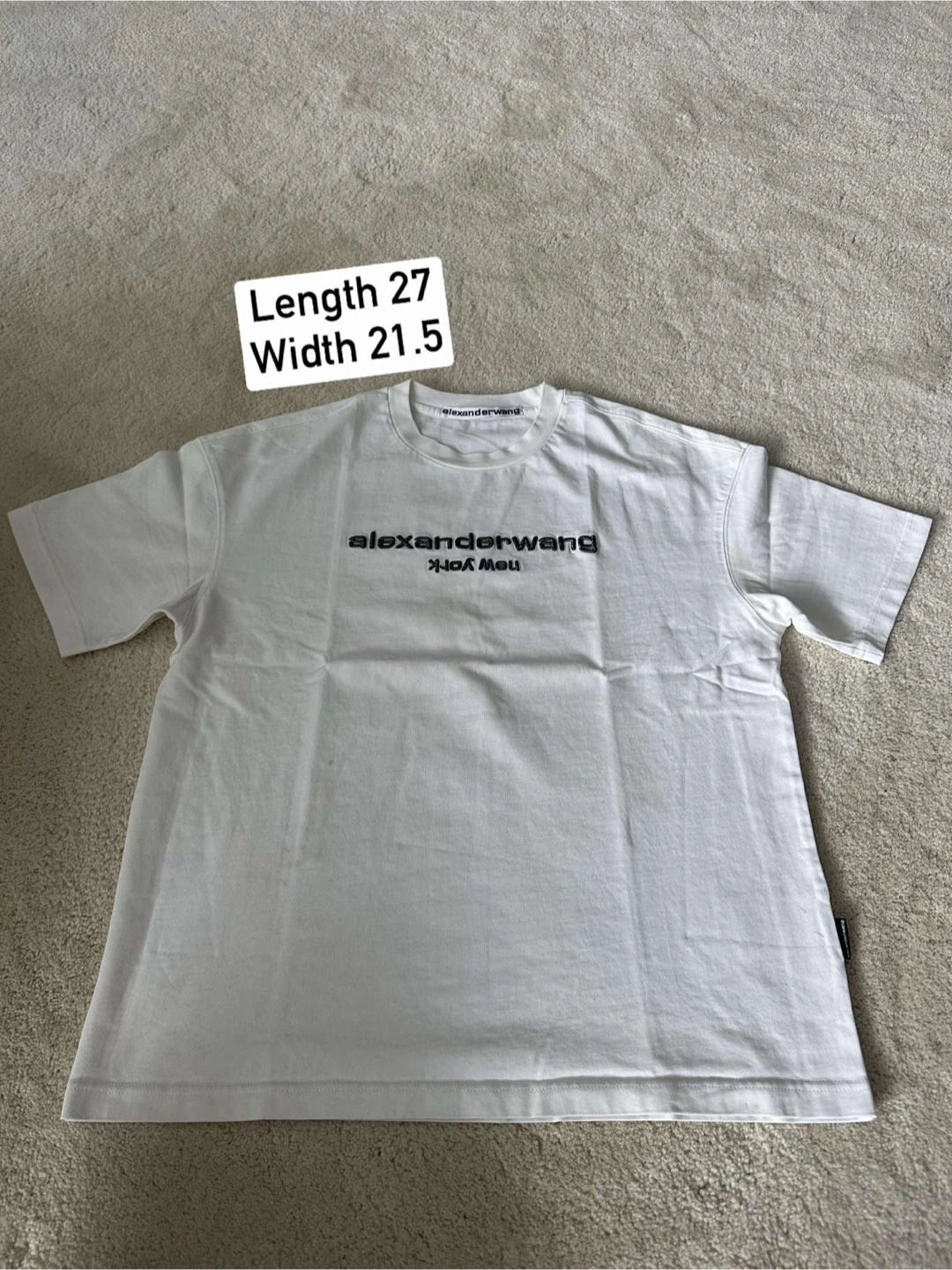 Selling a white Alexander Wang t-shirt. The measurements are: - Length: 27 inches - Width: 21.5 inches